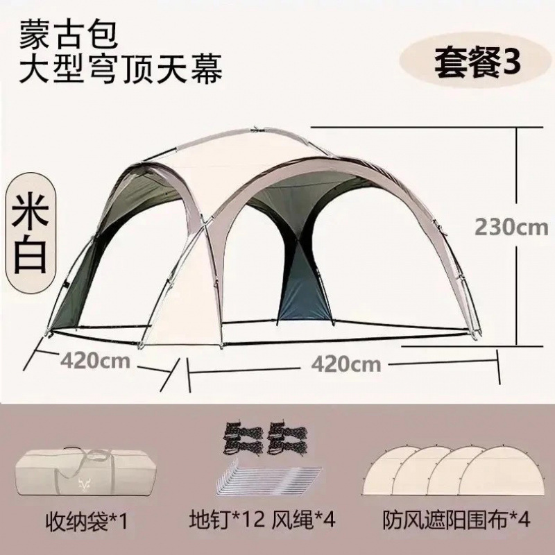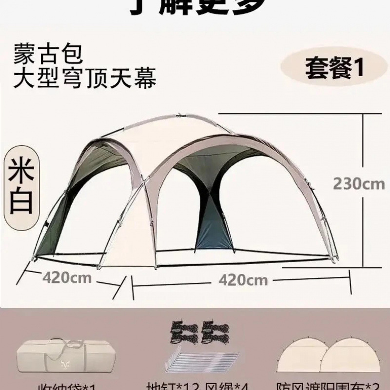 升级版蒙古包穹顶天幕帐篷球形遮阳棚挡风野营防晒户外露营防雨