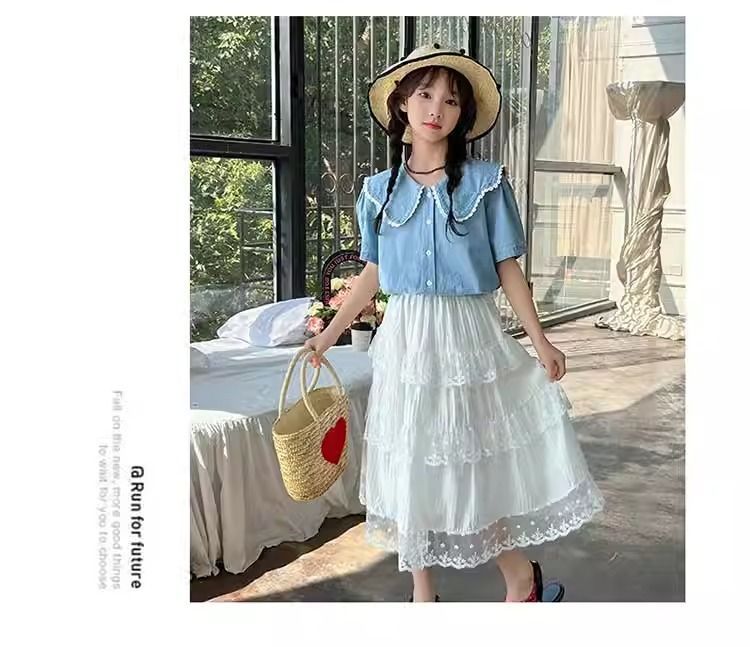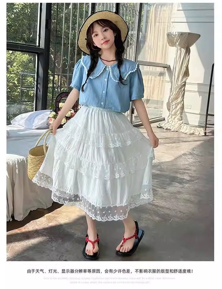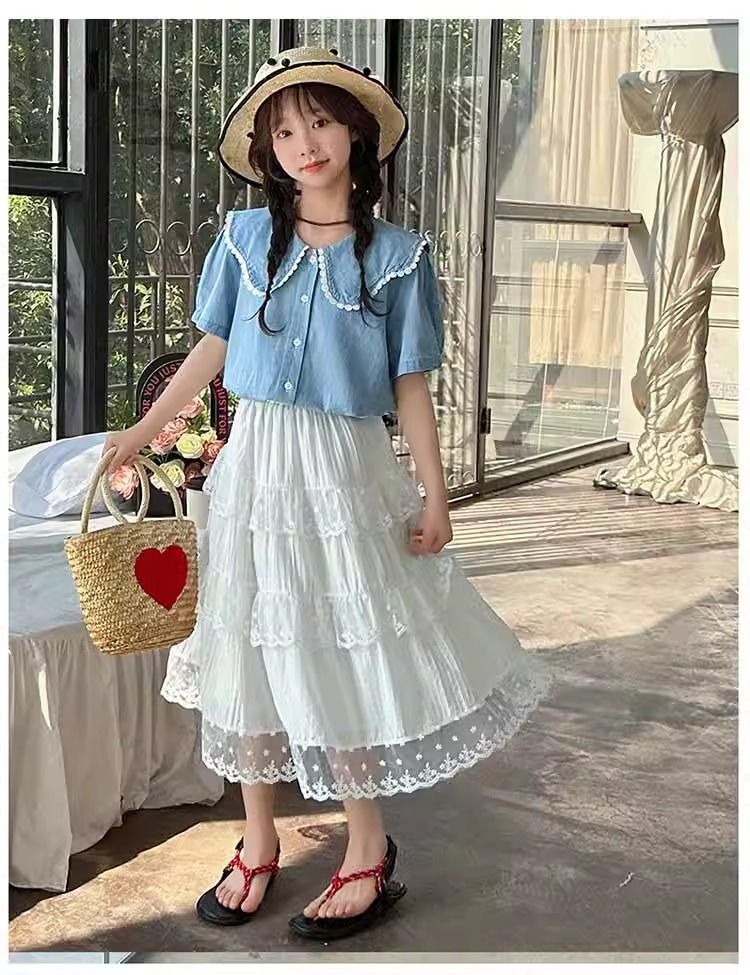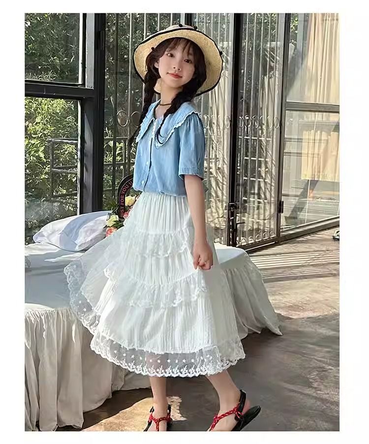여아 휴가용 다용도 스커트, 중대형 아동용 한국식 단색 여름 신작 다용도 레이스 캐주얼 스커트