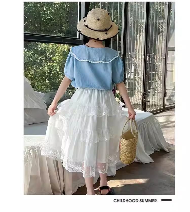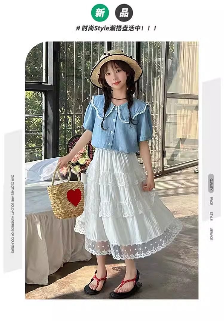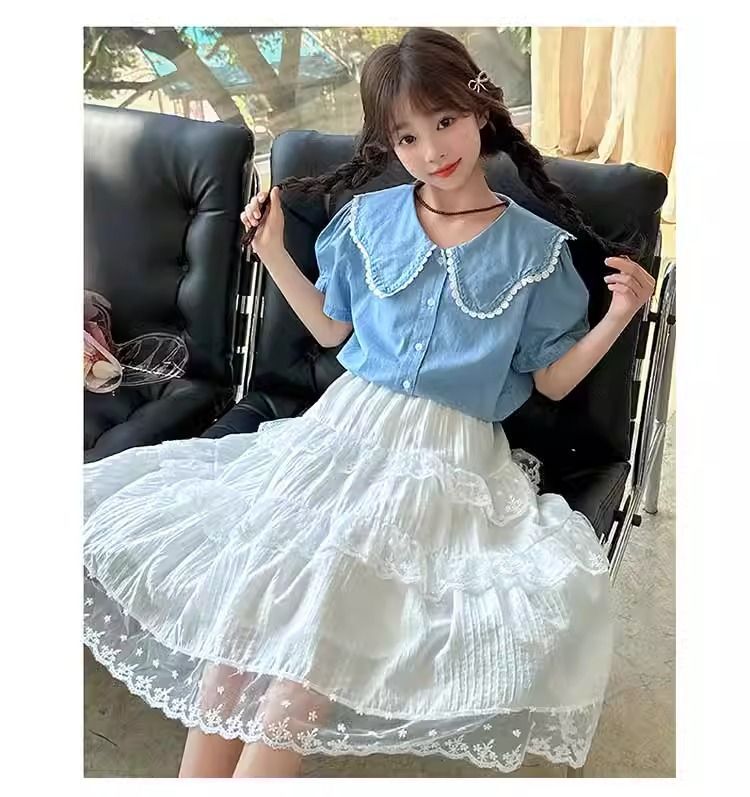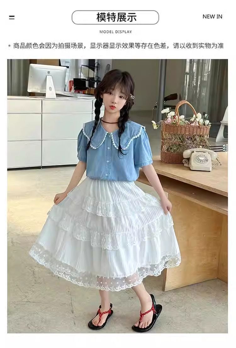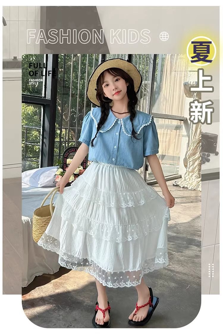 여아 휴가용 다용도 스커트, 중대형 아동용 한국식 단색 여름 신작 다용도 레이스 캐주얼 스커트스토어 가기