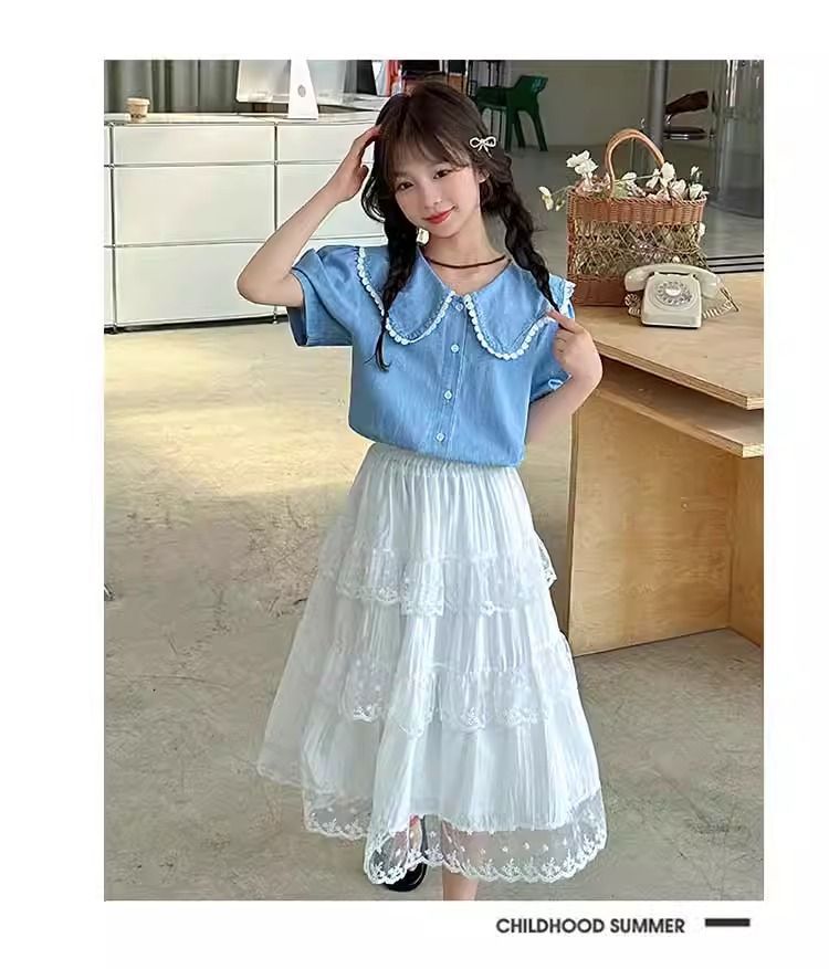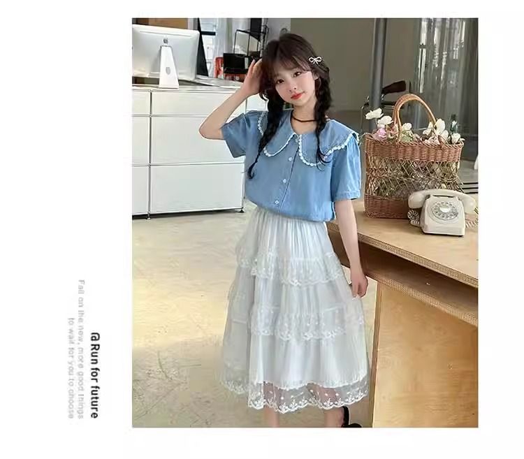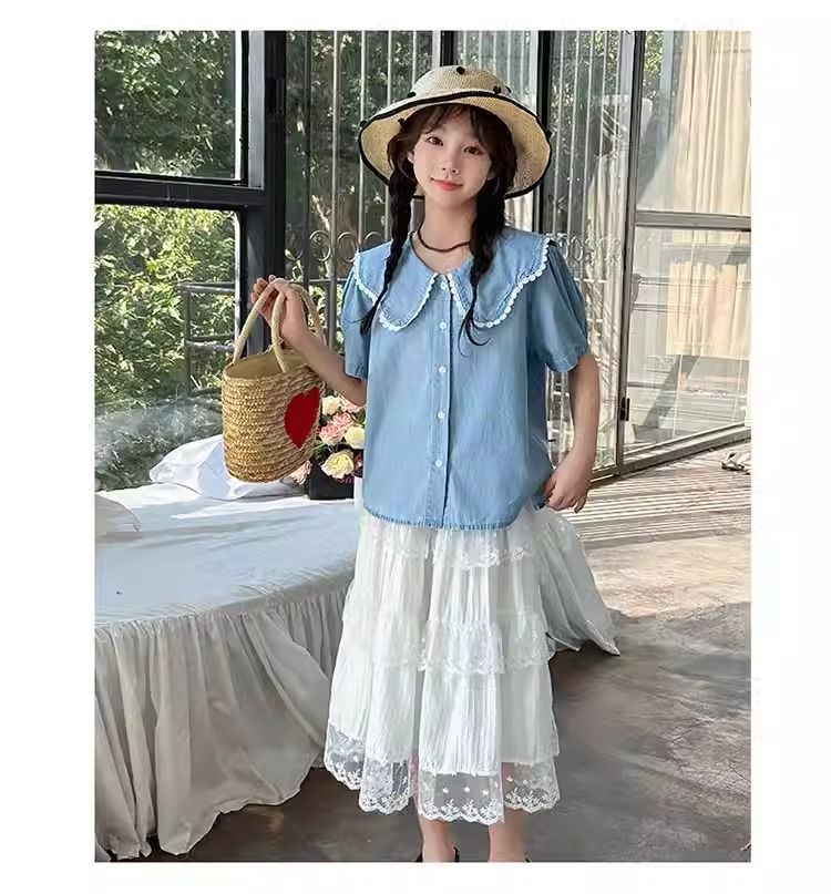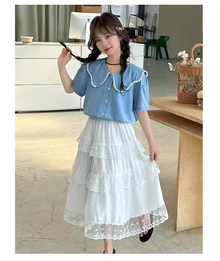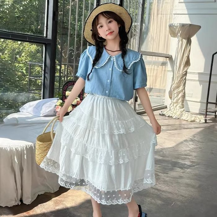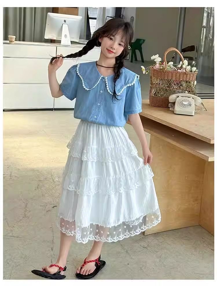여아 휴가용 다용도 스커트, 중대형 아동용 한국식 단색 여름 신작 다용도 레이스 캐주얼 스커트스토어 가기