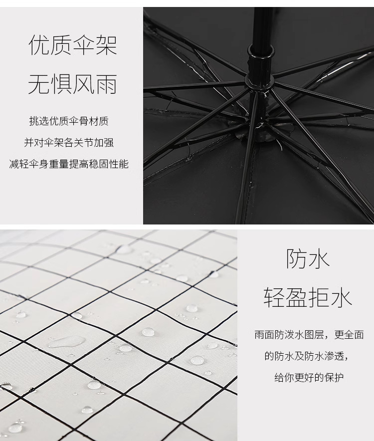 맑은 날과 비오는 날, 자외선 차단, 자외선 차단, 격자 무늬 우산, 접이식 한국식 창의적 비닐 파라솔, 여성용스토어 가기