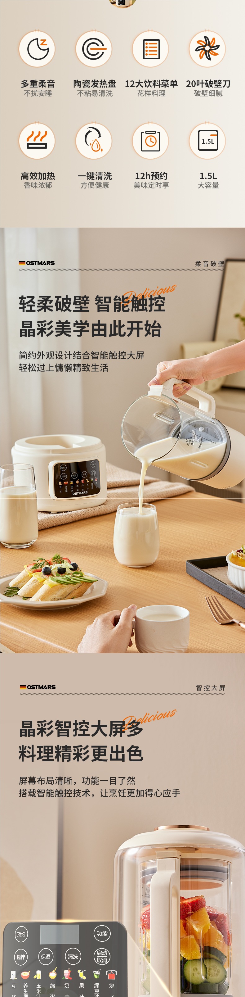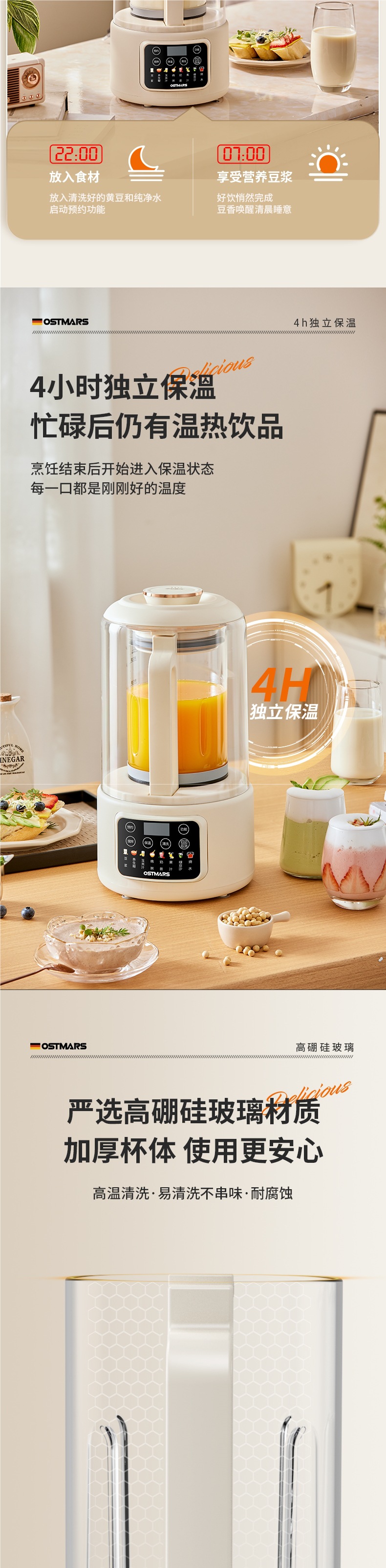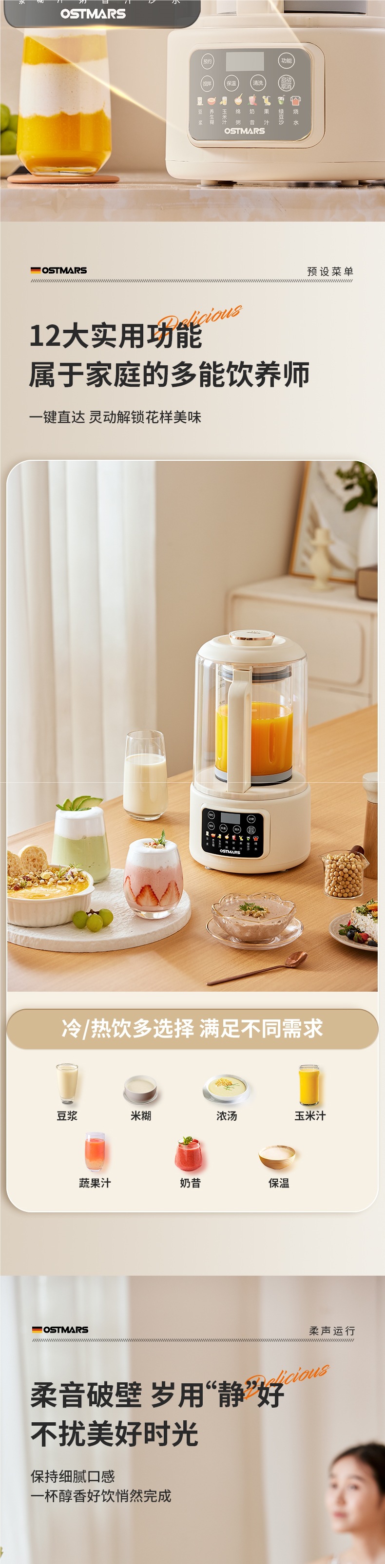 독일 OSTMARS 벽 깨는 기계 부드러운 소리와 가벼운 톤 난방 다기능 가정용 보충 기계 대두 우유 기계스토어 가기