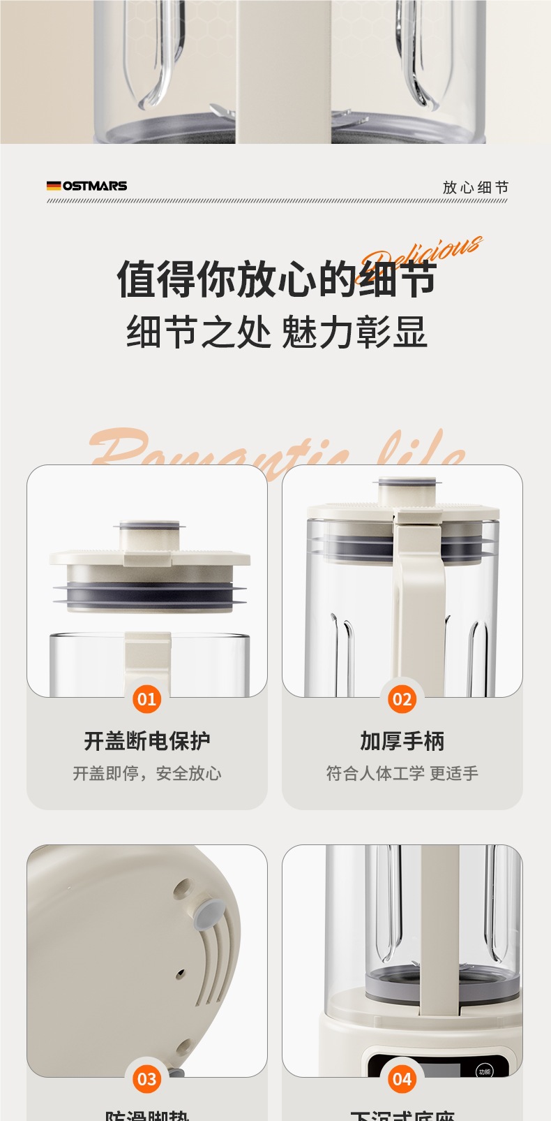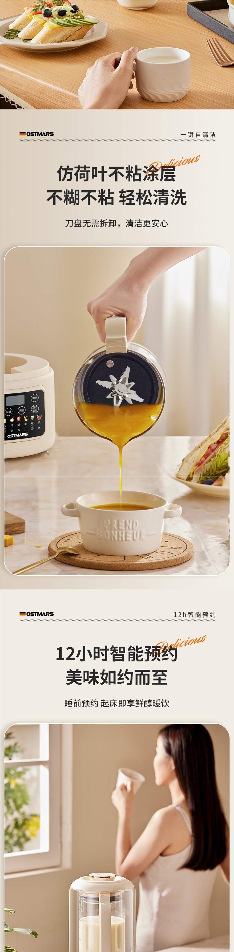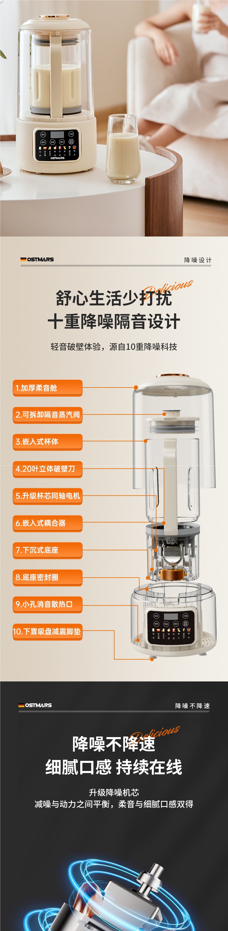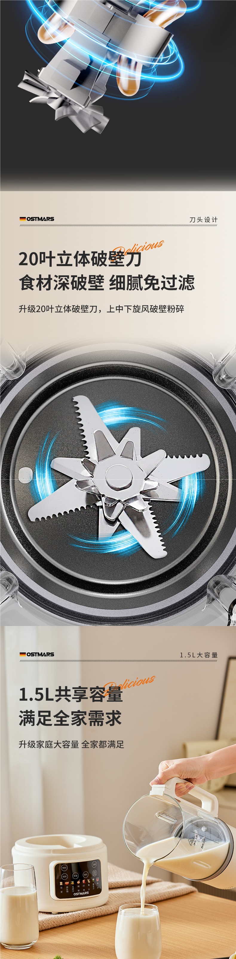 독일 OSTMARS 벽 깨는 기계 부드러운 소리와 가벼운 톤 난방 다기능 가정용 보충 기계 대두 우유 기계스토어 가기
