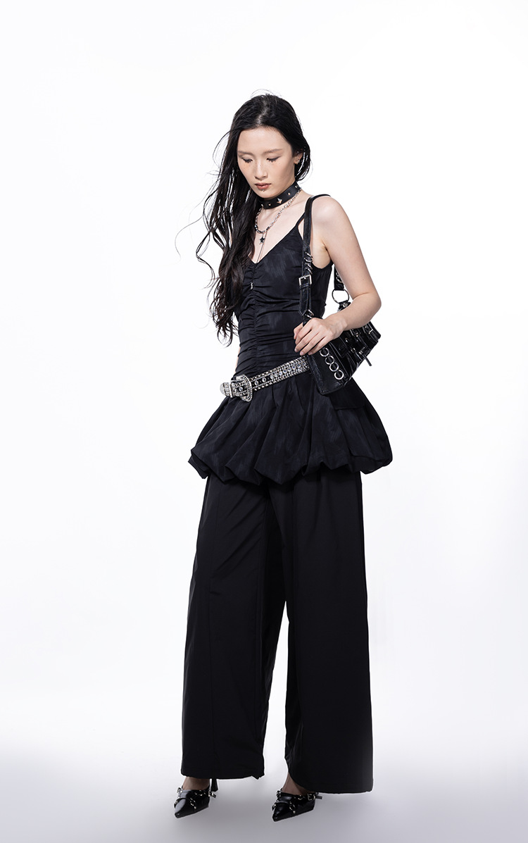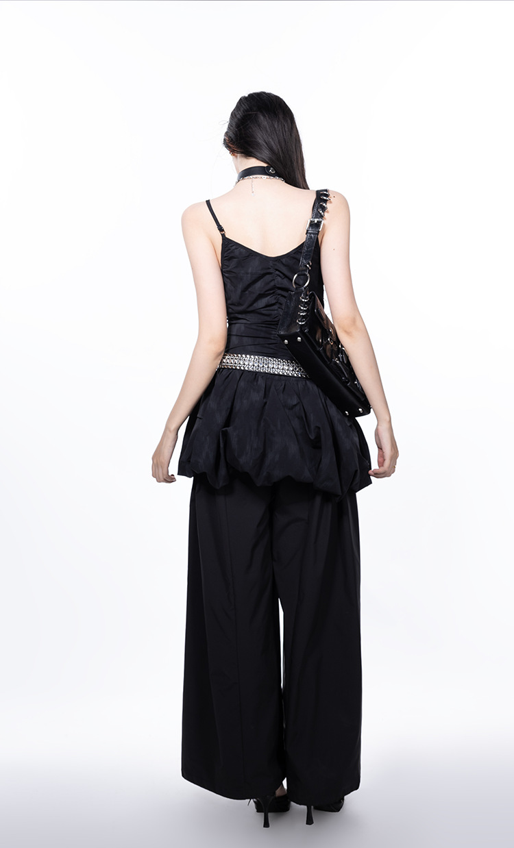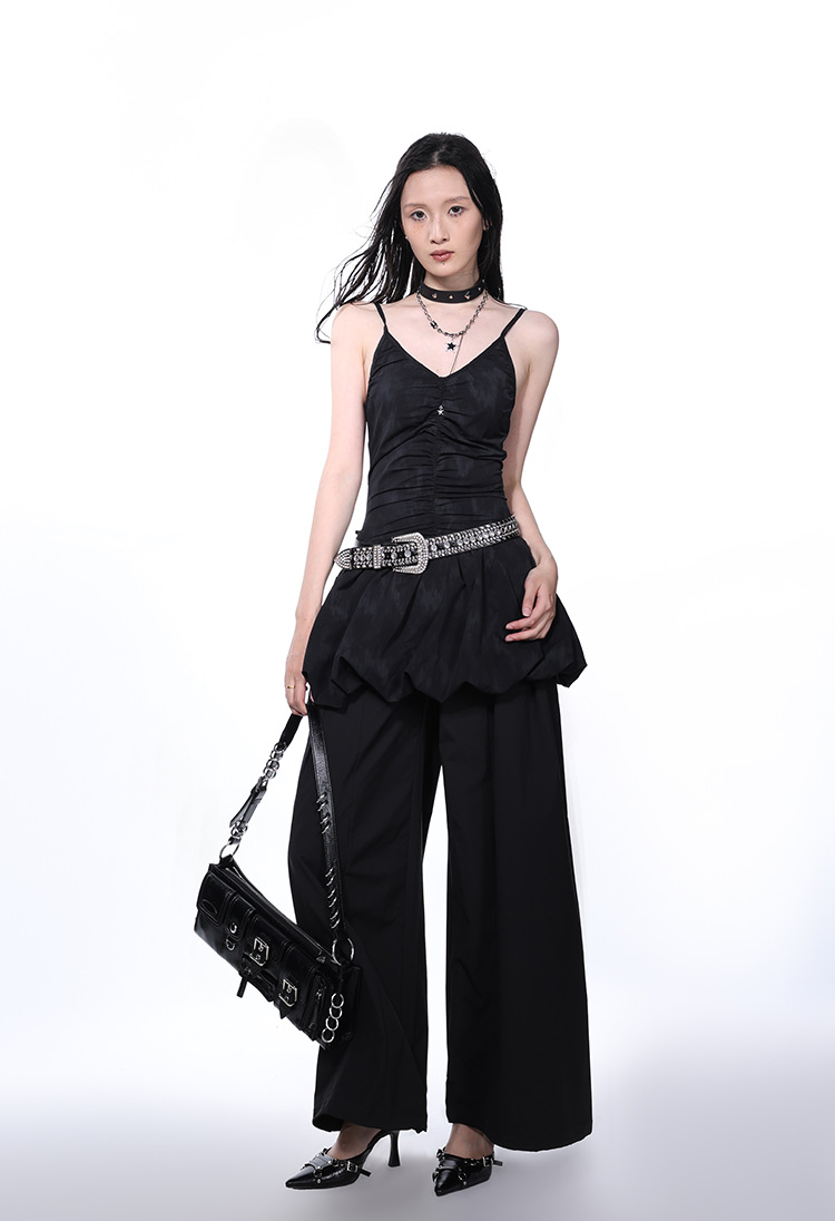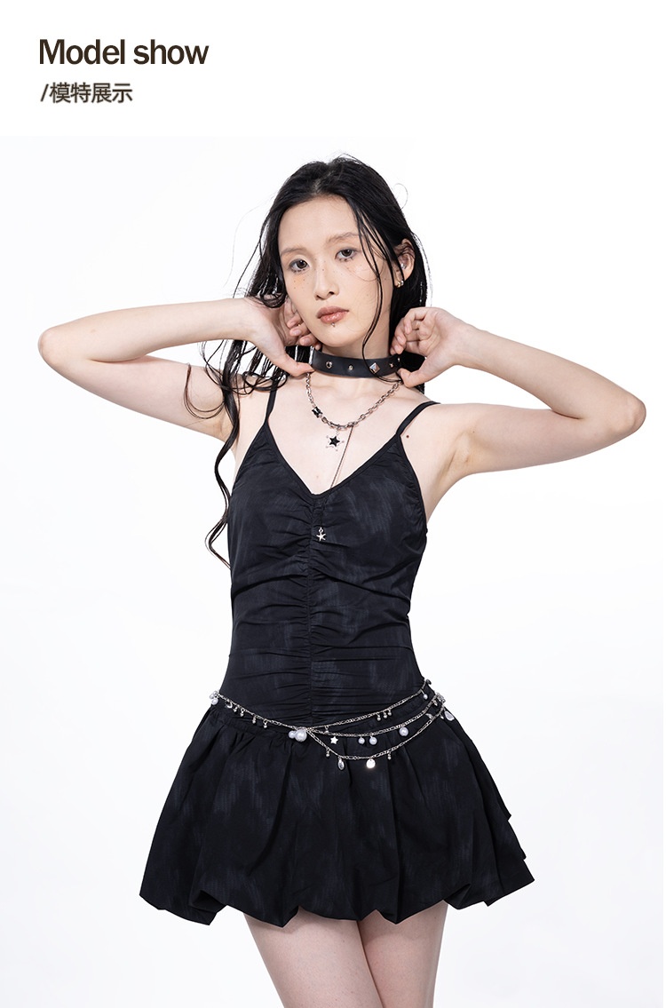 2025 새로운 여름 복고풍 핫 소녀 스타일 블랙 서스펜더 드레스 틈새 디자인 슬림 피트 짧은 스커트