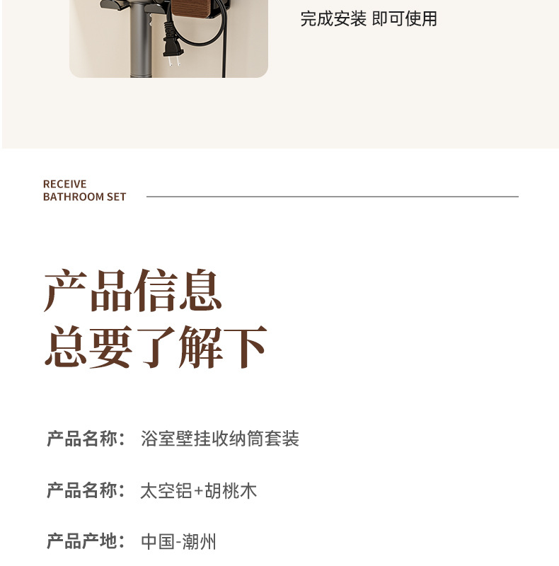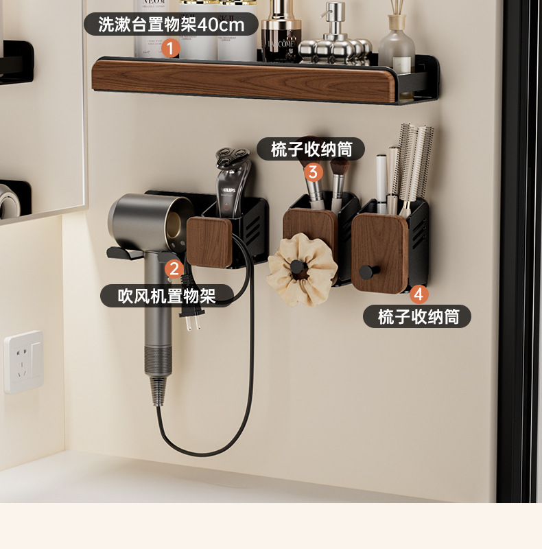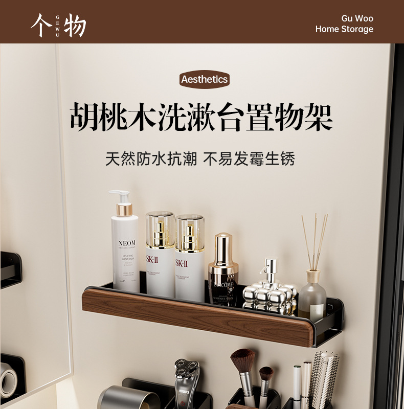 개인용 세면대 수납선반, 욕실 손씻기, 펀치 없는 욕실 벽걸이 수납, 호두수납선반
