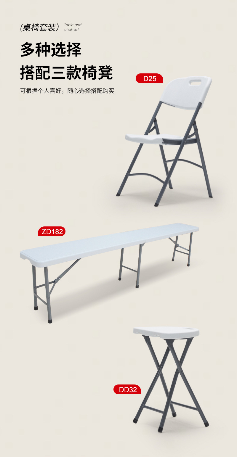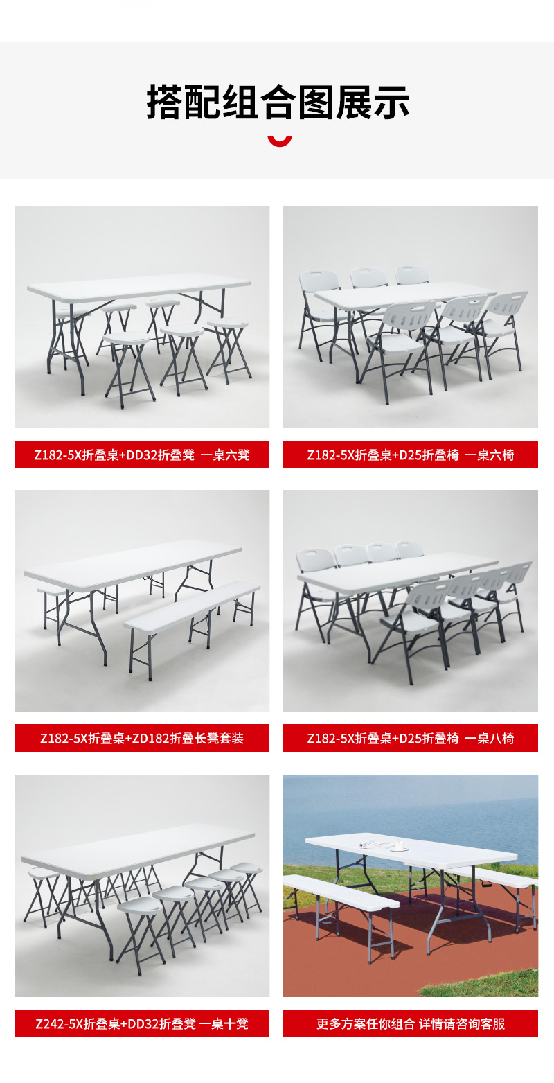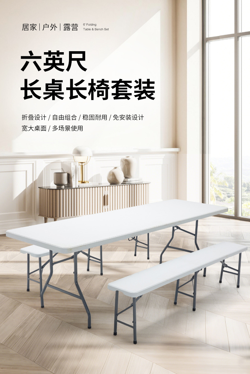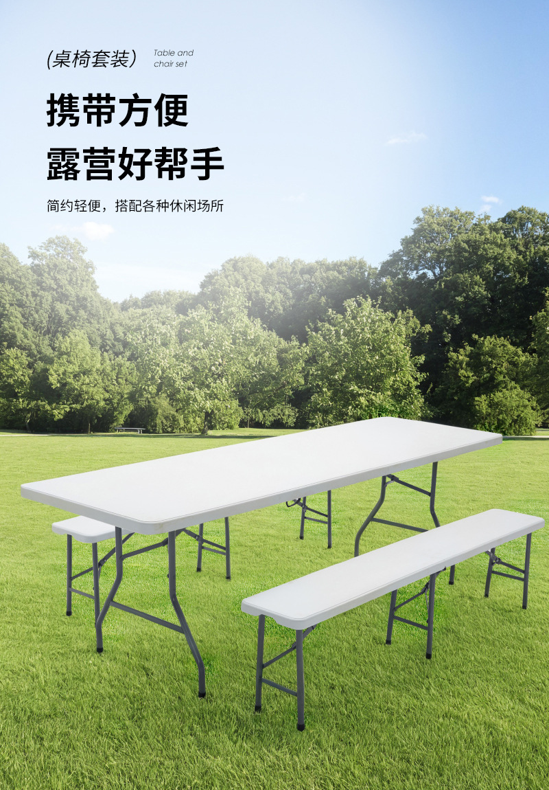 식당 야시장 매점 HDPE 간이 식탁과 의자 조합 6피트 야외 캠핑 접이식 긴 테이블과 벤치 세트