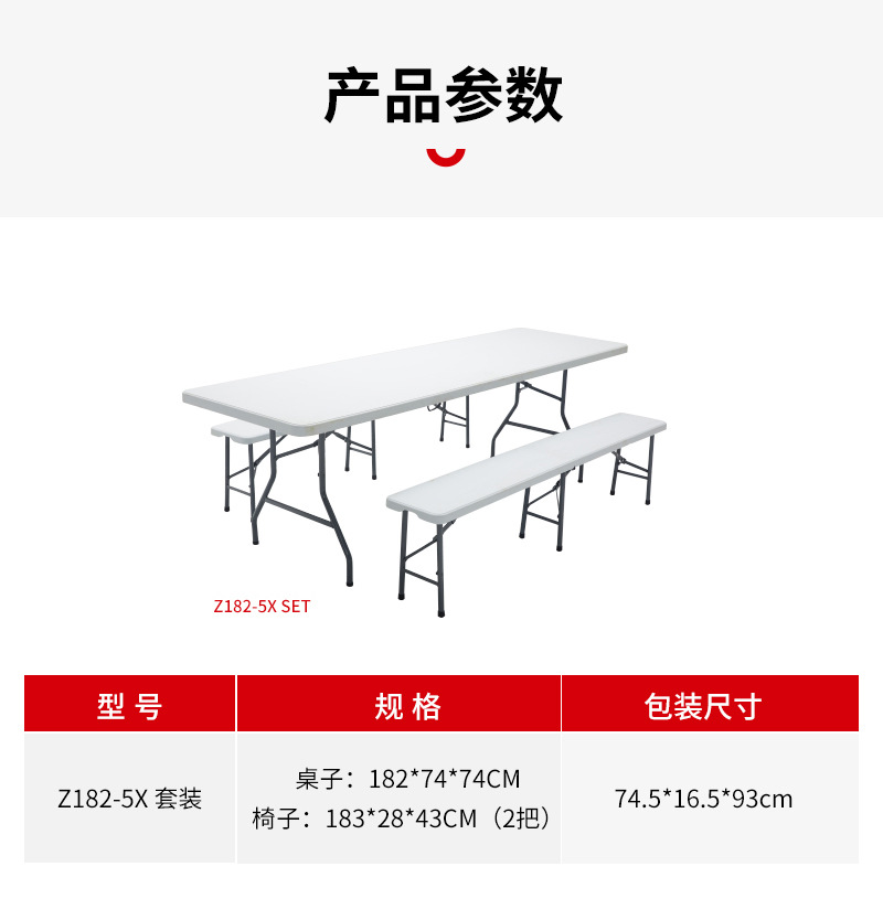 • 6피트 테이블과 벤치 2개 결합(ZD182 벤치)