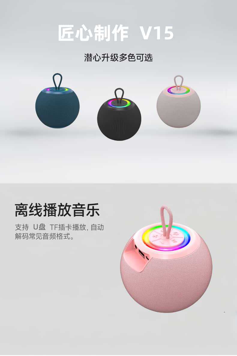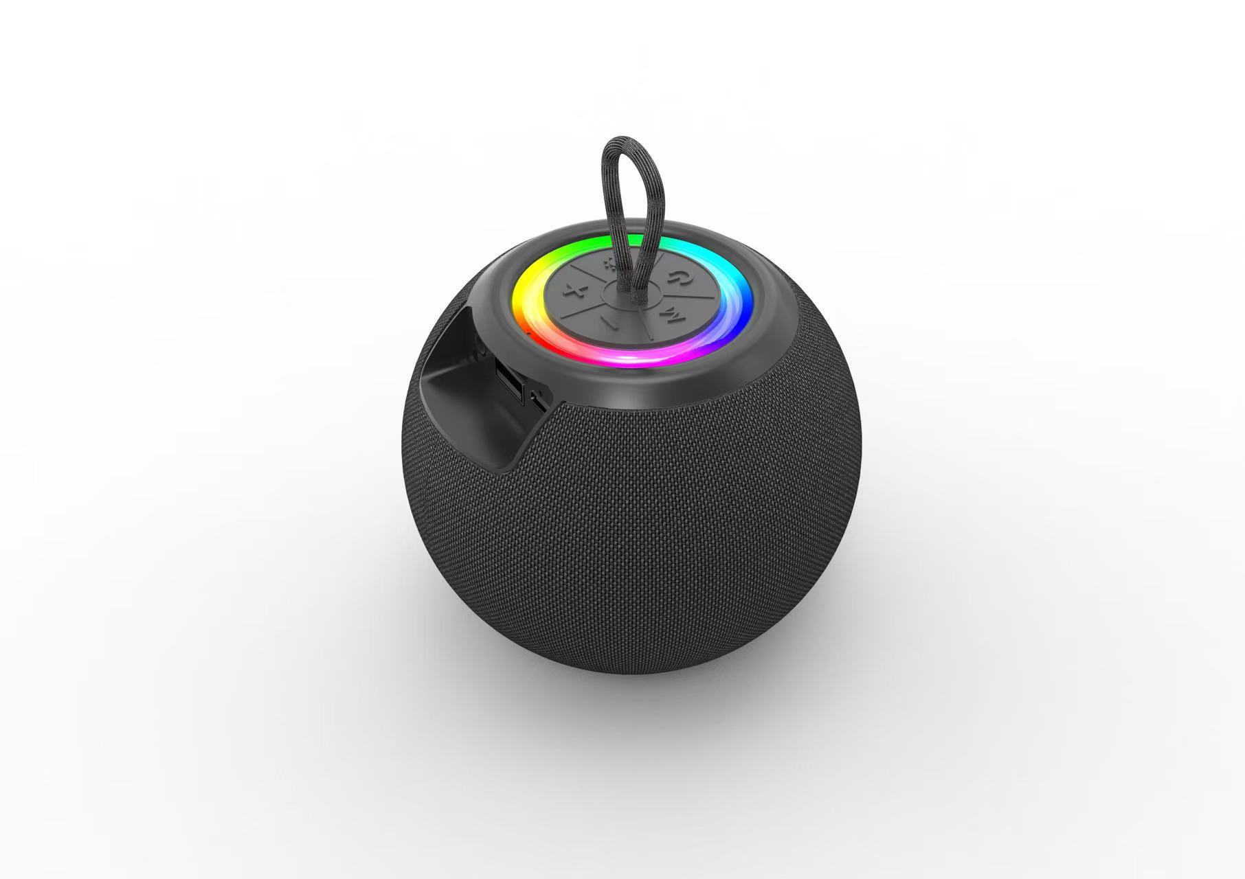 국경 새로운 직물 라운드 창조적 인 선물 휴대용 데스크탑 RGB 빛 야외 서브 우퍼 블루투스 스피커