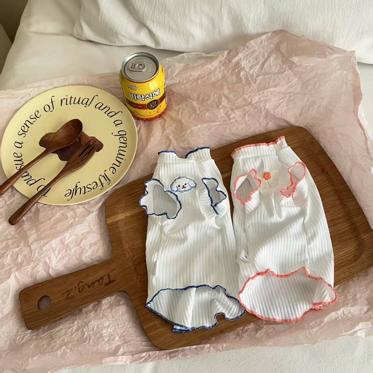 애완 동물 의류 새로운 봄과 여름 고양이 탈모 방지 의류 제조 업체 도매 애완 동물 여름 스타일 플라이 슬리브 조끼