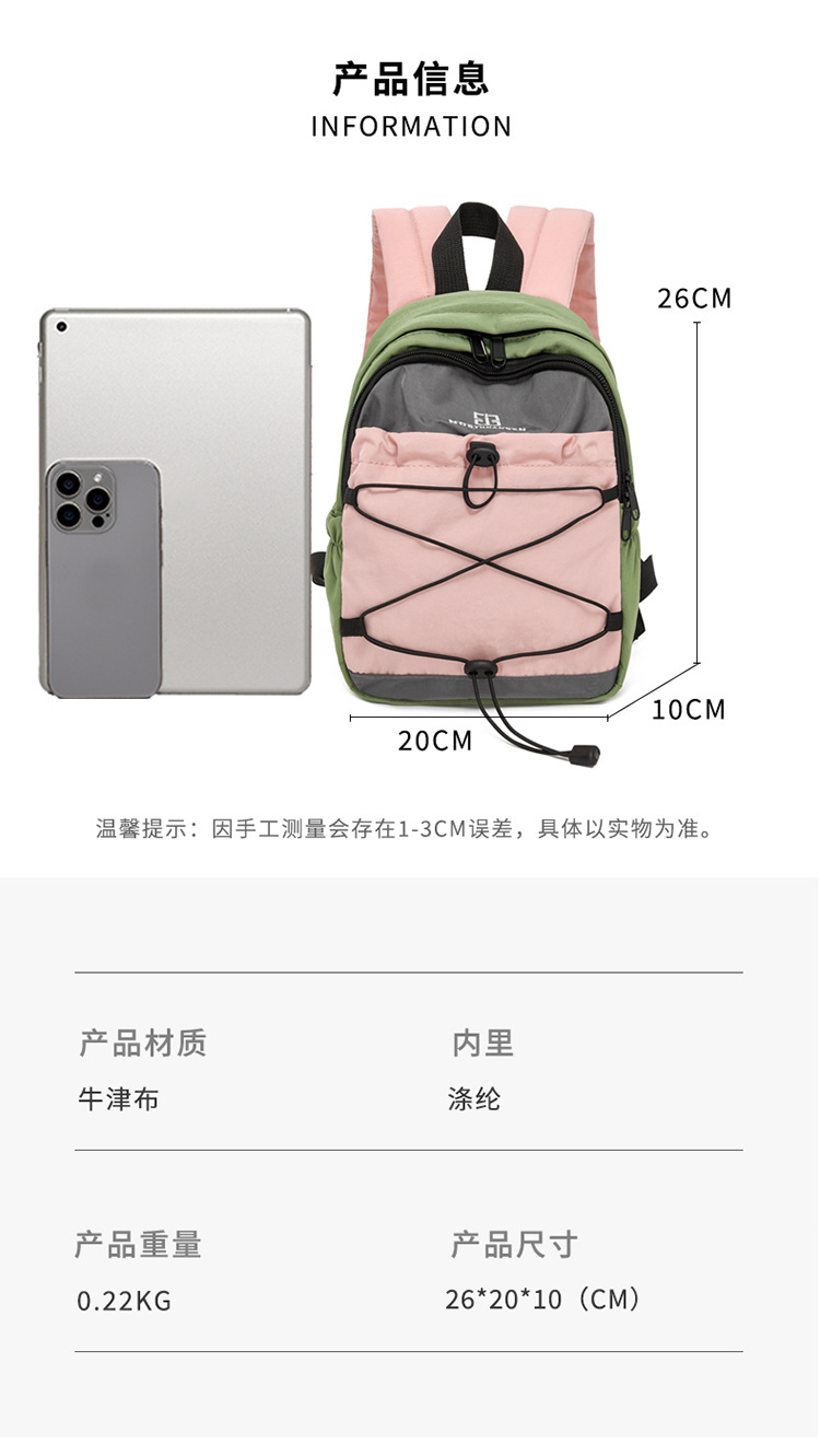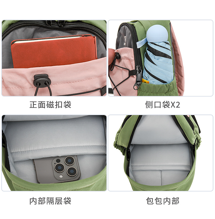 한국식 드로스트링 디자인 백팩, 아웃도어 하이킹 스포츠 등산 가방, 배색 캐주얼 백팩, 다용도 통근 가방