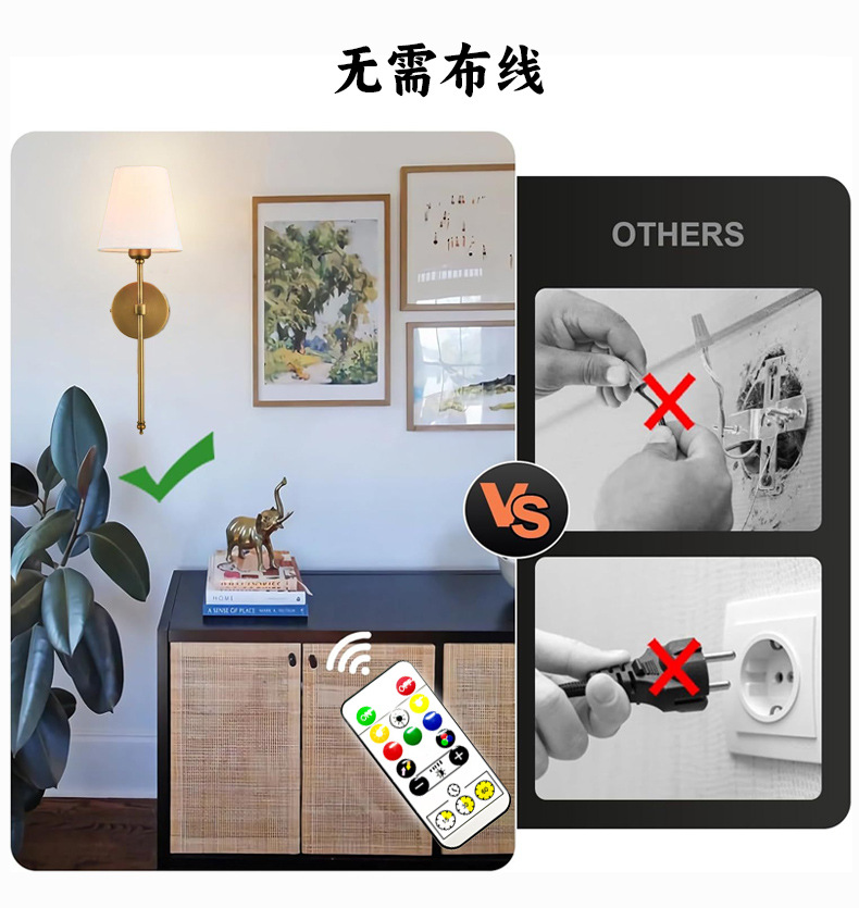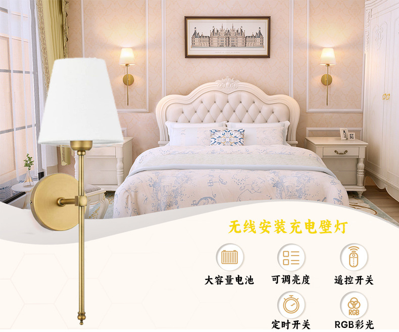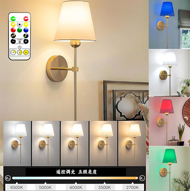 아마존 천 커버 벽 램프 북유럽 철 LED 거실 침실 머리맡 원격 제어 RGB 디밍 충전식 눈 보호 램프