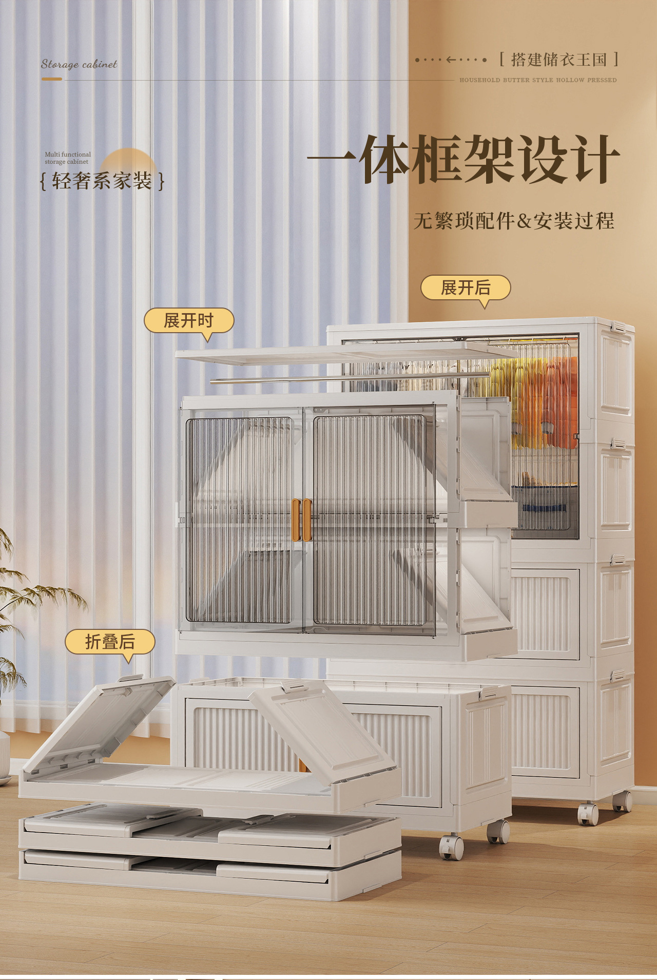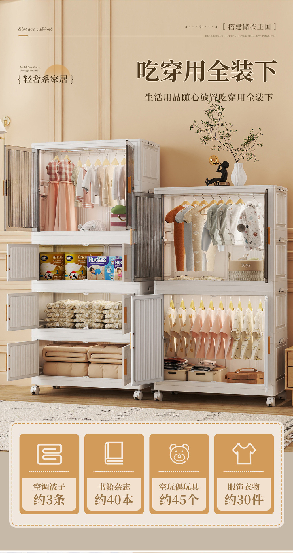 가정용 다층 설치가 필요없는 접이식 옷장 아동복 스낵 보관 상자 거실 이동식 잔해물 보관 캐비닛