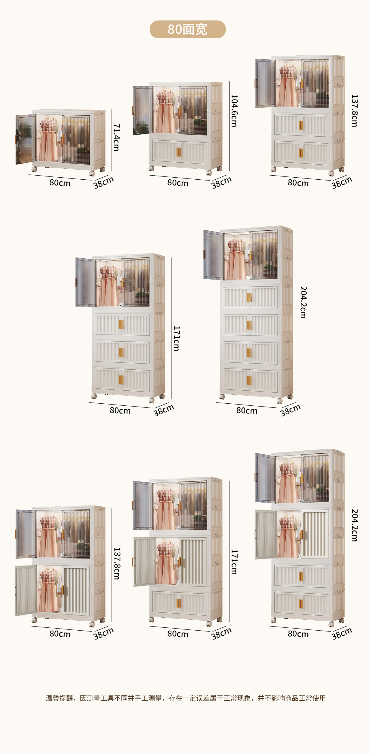 • 혼합 색상 폭 80cm [옷장 1개 + 수납장 1개]