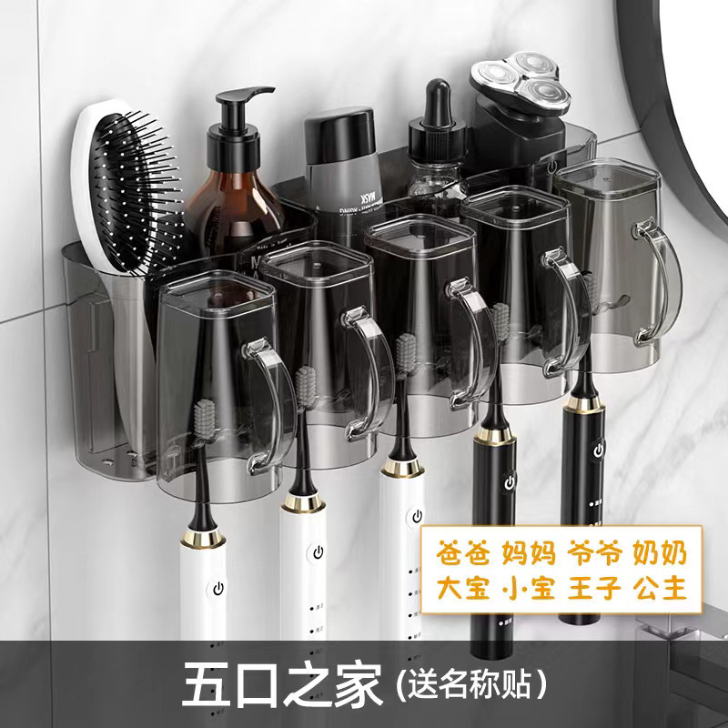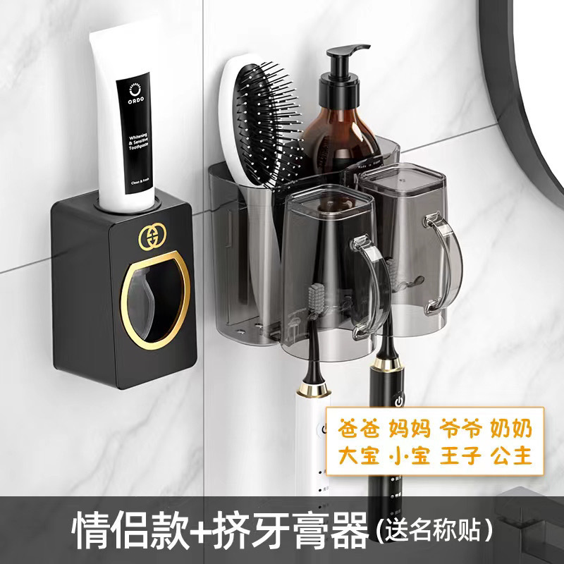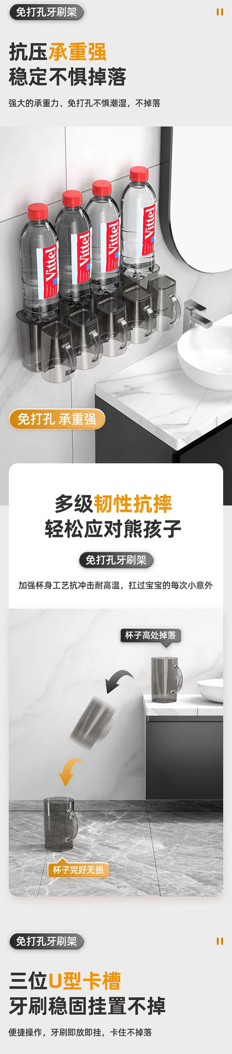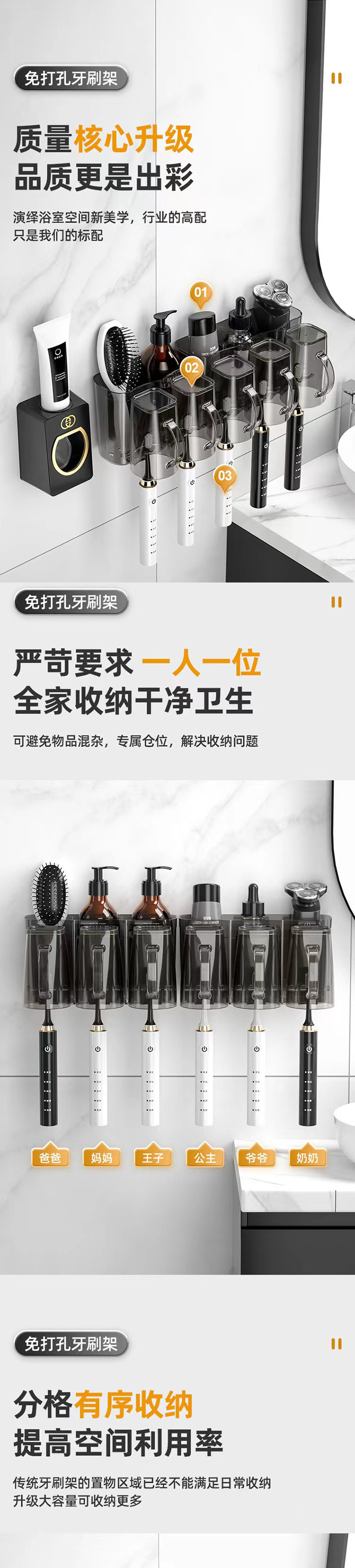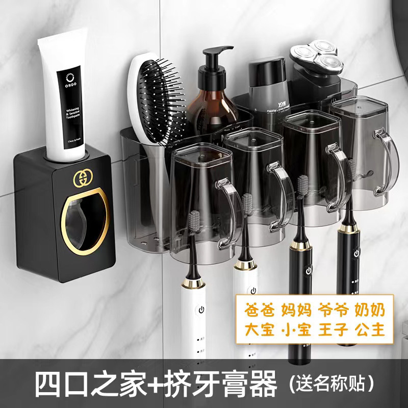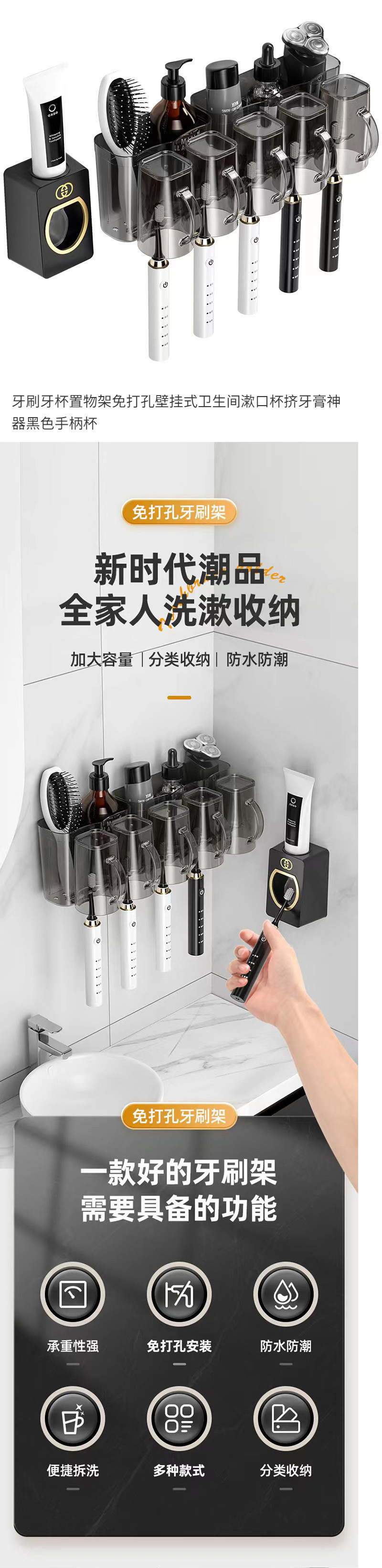 구멍이 없는 칫솔 및 컵 보관함, 벽걸이형 욕실 구강청결제 컵, 치약 압착 도구, 검정색 손잡이 컵스토어 가기