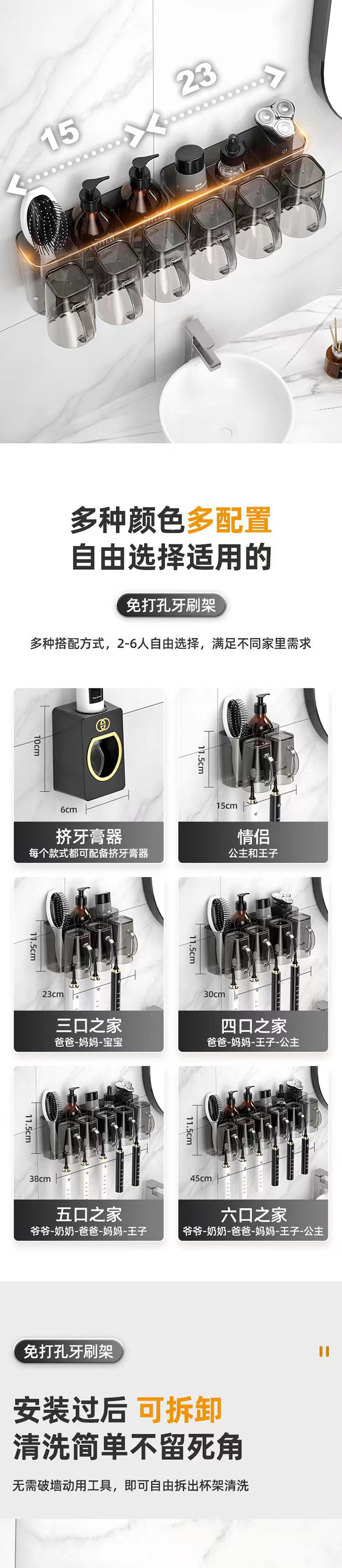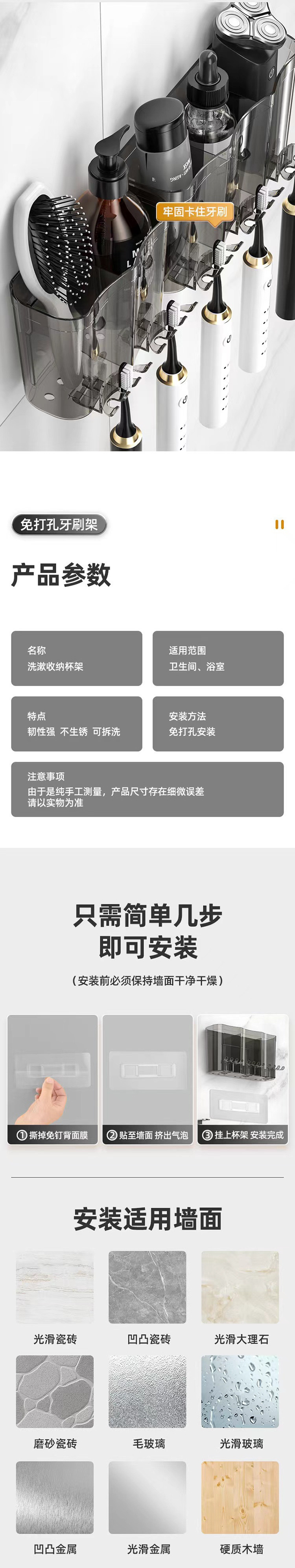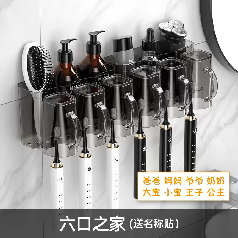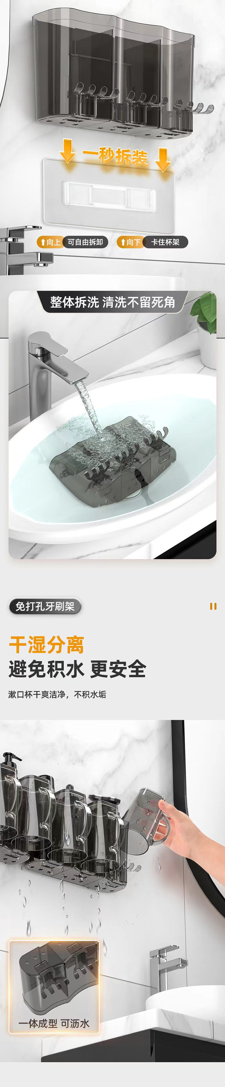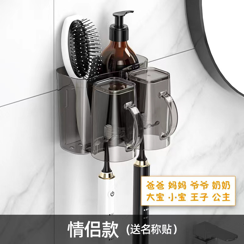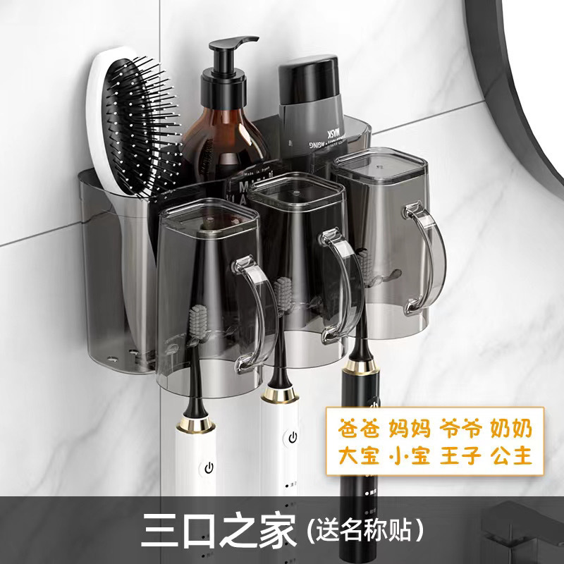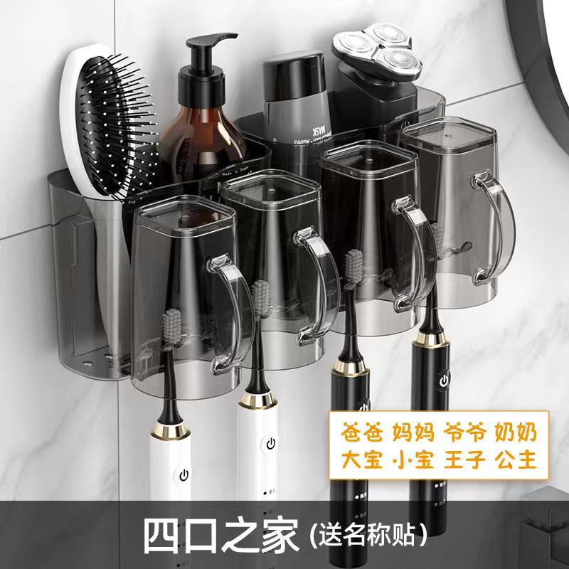 구멍이 없는 칫솔 및 컵 보관함, 벽걸이형 욕실 구강청결제 컵, 치약 압착 도구, 검정색 손잡이 컵스토어 가기