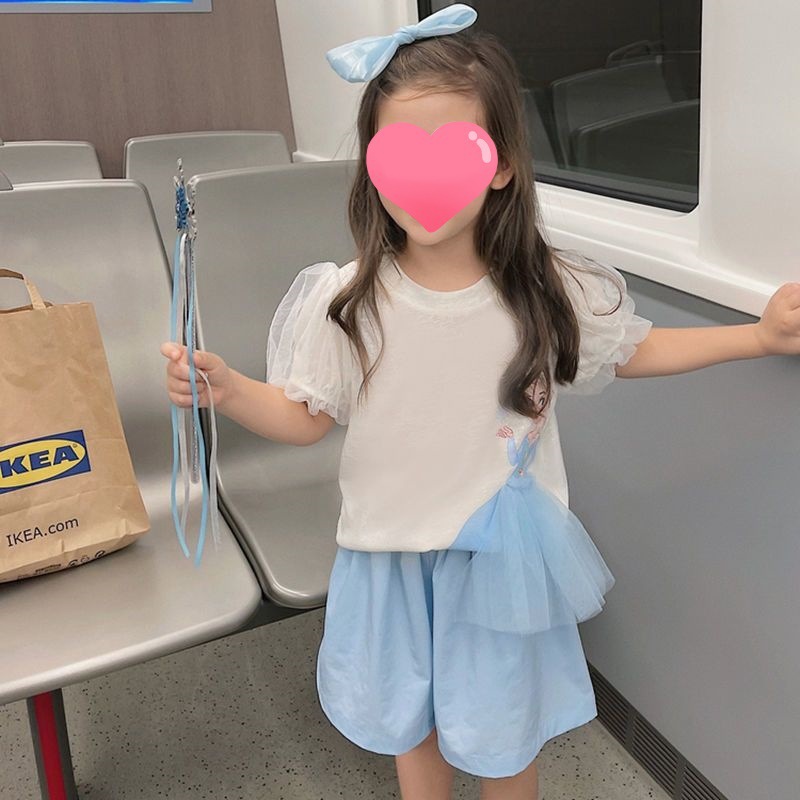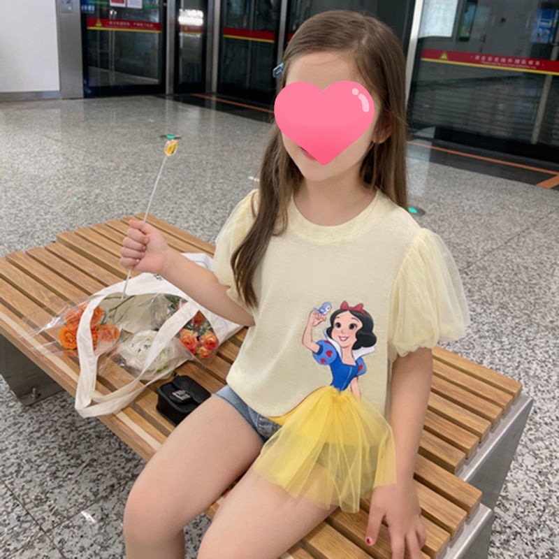 여아 여름 메쉬 퍼프 슬리브 공주 티셔츠 아동용 입체 만화 반팔 상의 트렌디한 여름 얇은 스타일스토어 가기