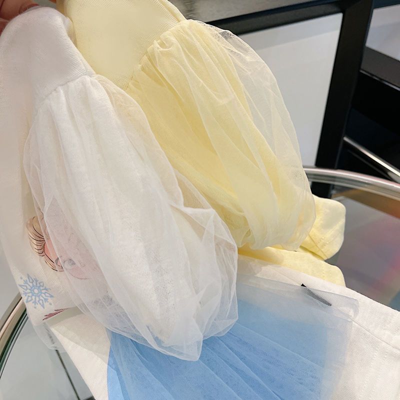 여아 여름 메쉬 퍼프 슬리브 공주 티셔츠 아동용 입체 만화 반팔 상의 트렌디한 여름 얇은 스타일