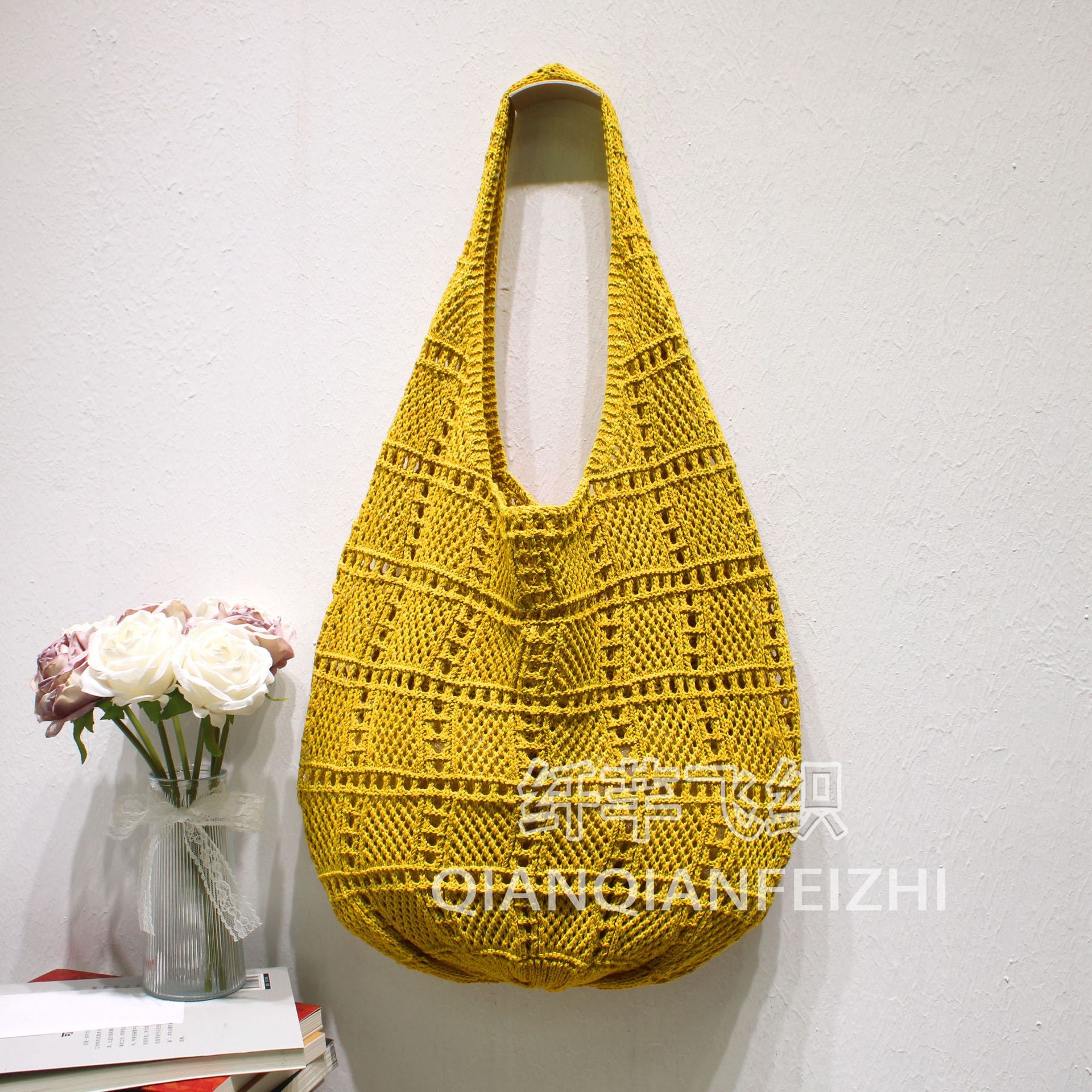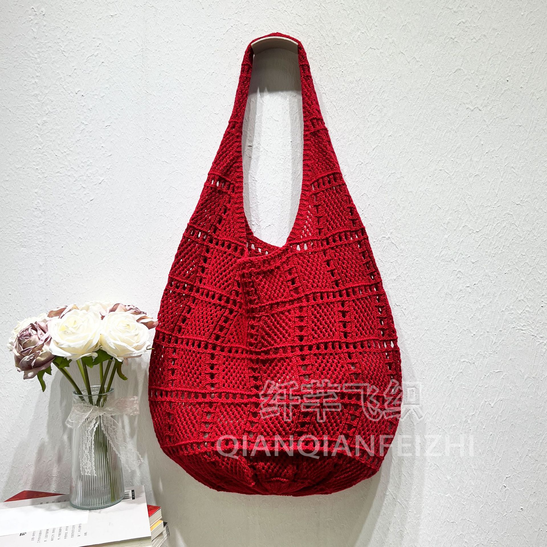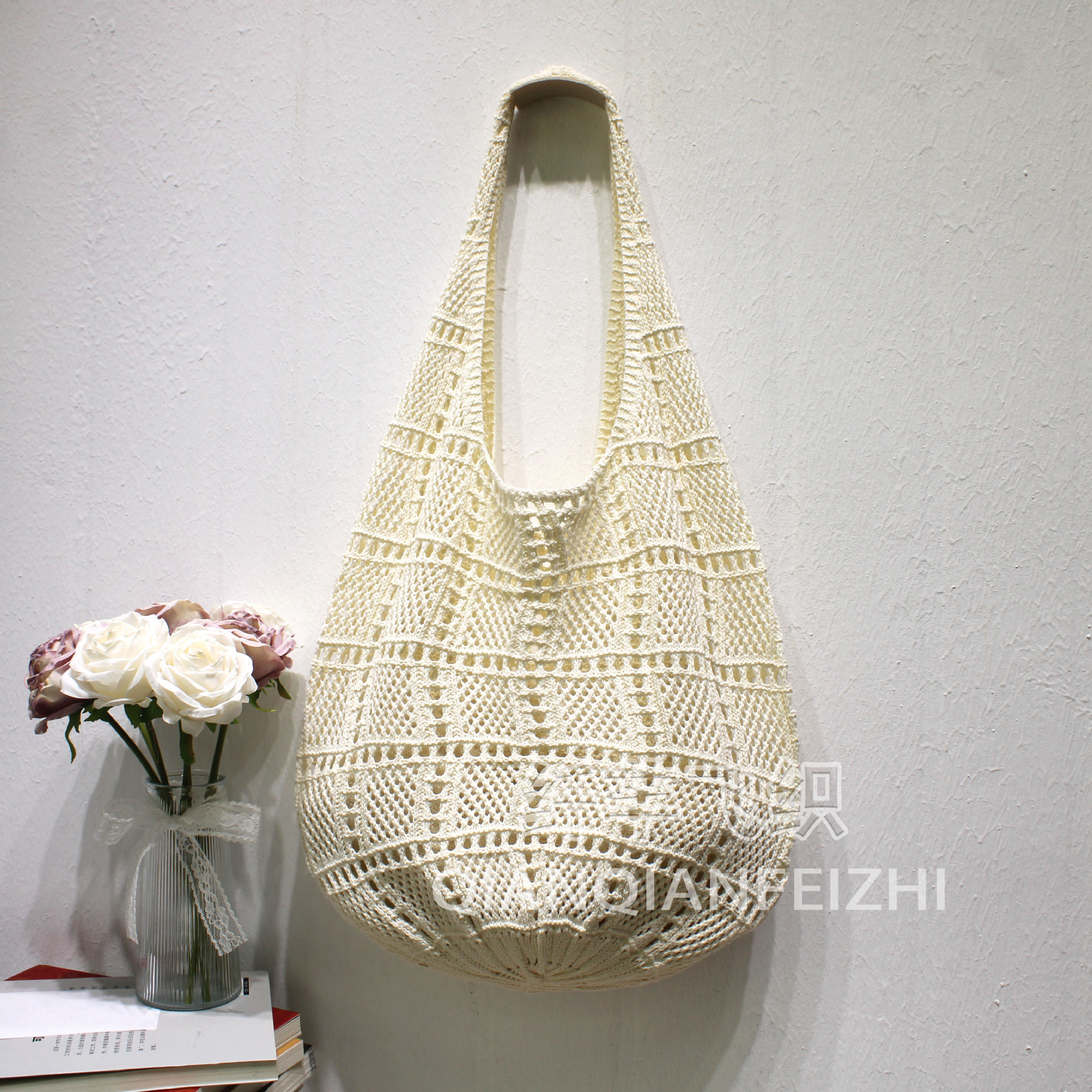 Ins Mori 스타일 빈티지 예술적 짠 가방 낚시 그물 가방 니트 어깨 가방 토트 백 홀리데이 비치 백 여성 가방 새로운