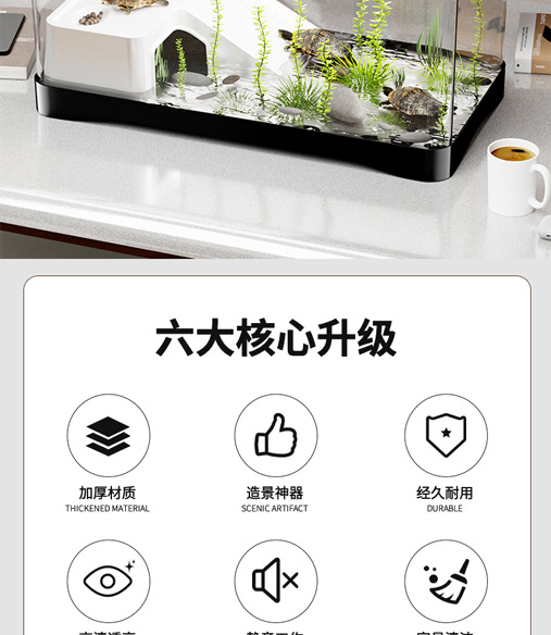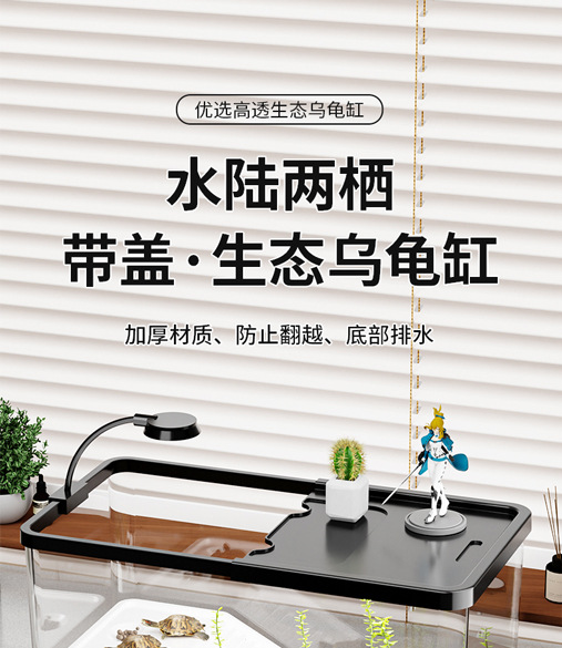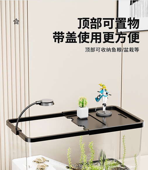거북이 풍경 물고기 탱크를 키우기위한 플라스틱 가정용 소형 탱크 바구니 테이블이있는 특수 생태 탱크스토어 가기