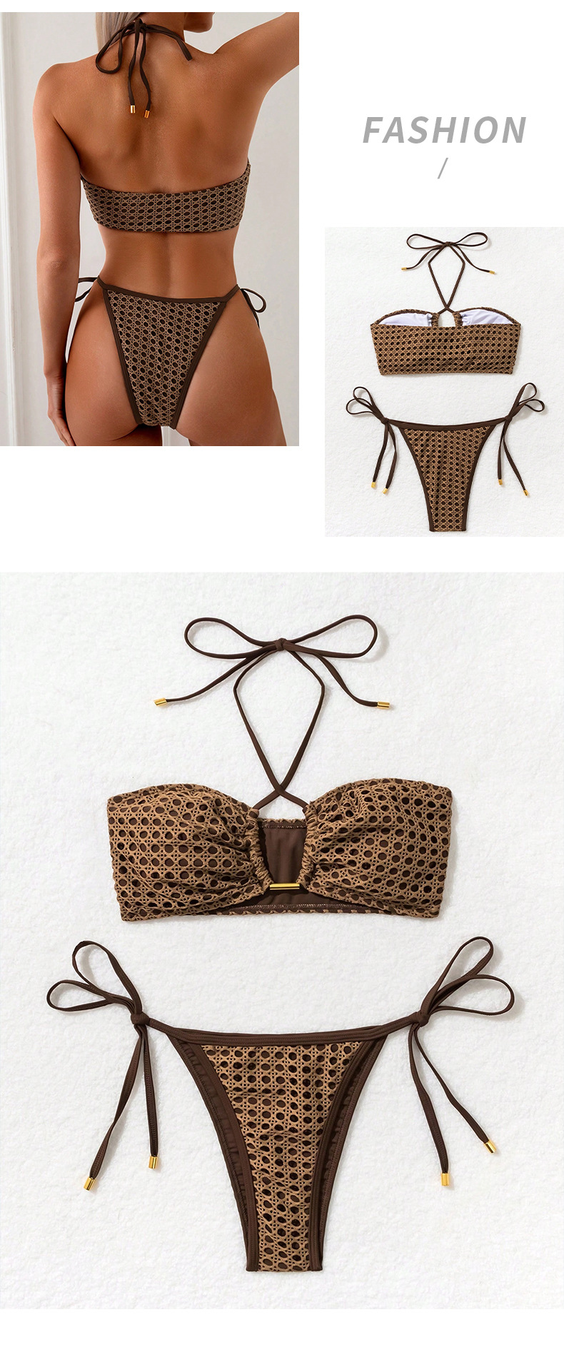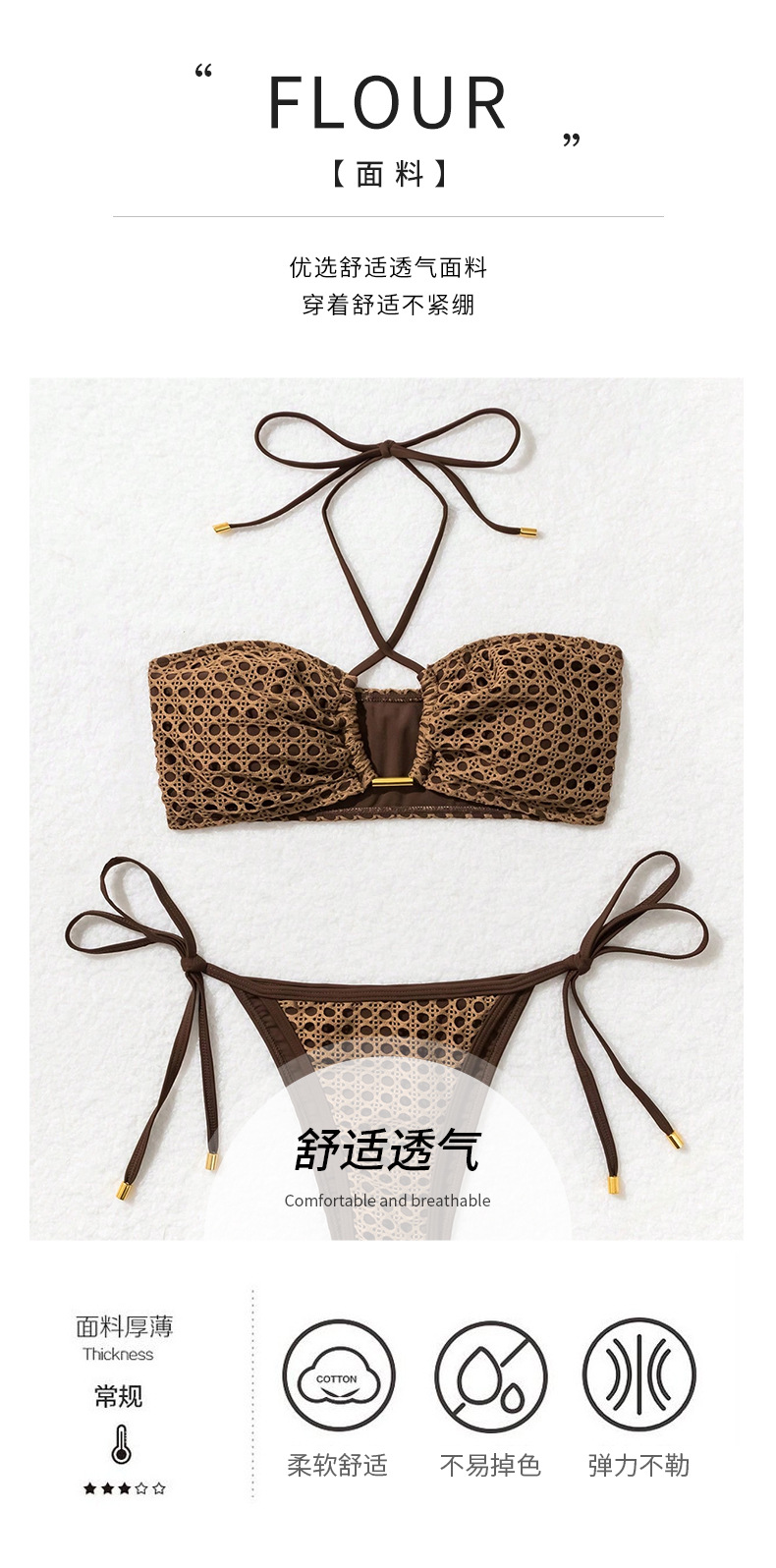 2025 유럽 및 미국 신상 섹시한 3피스 홀터넥 타이 비키니 수영복 여성용 비키니 고탄력스토어 가기