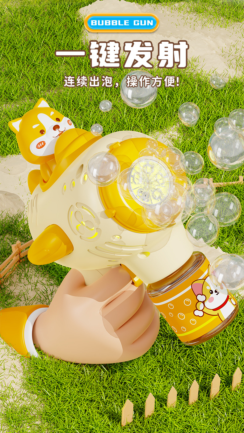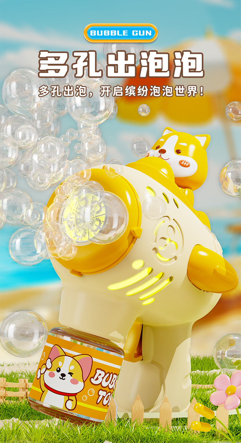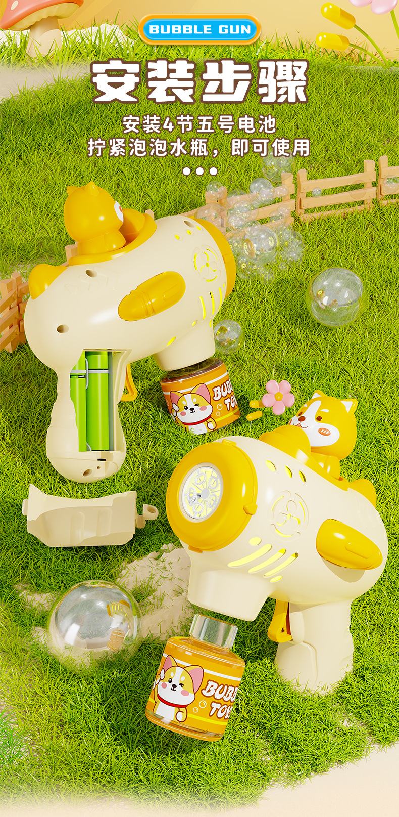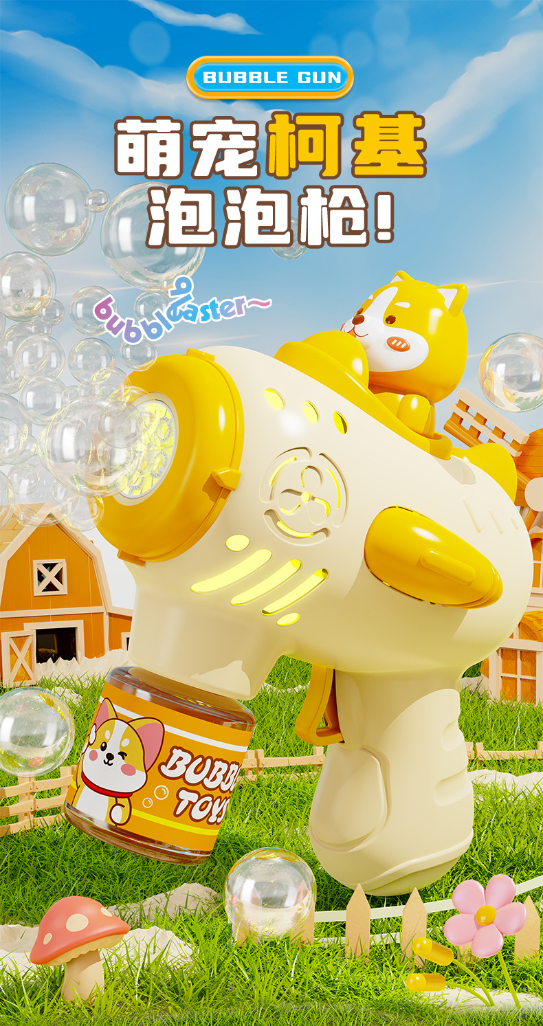 국경 간 새로운 코기 버블 머신 장난감 어린이 완전 자동 휴대용 전기 버블 건 거리 노점 도매스토어 가기