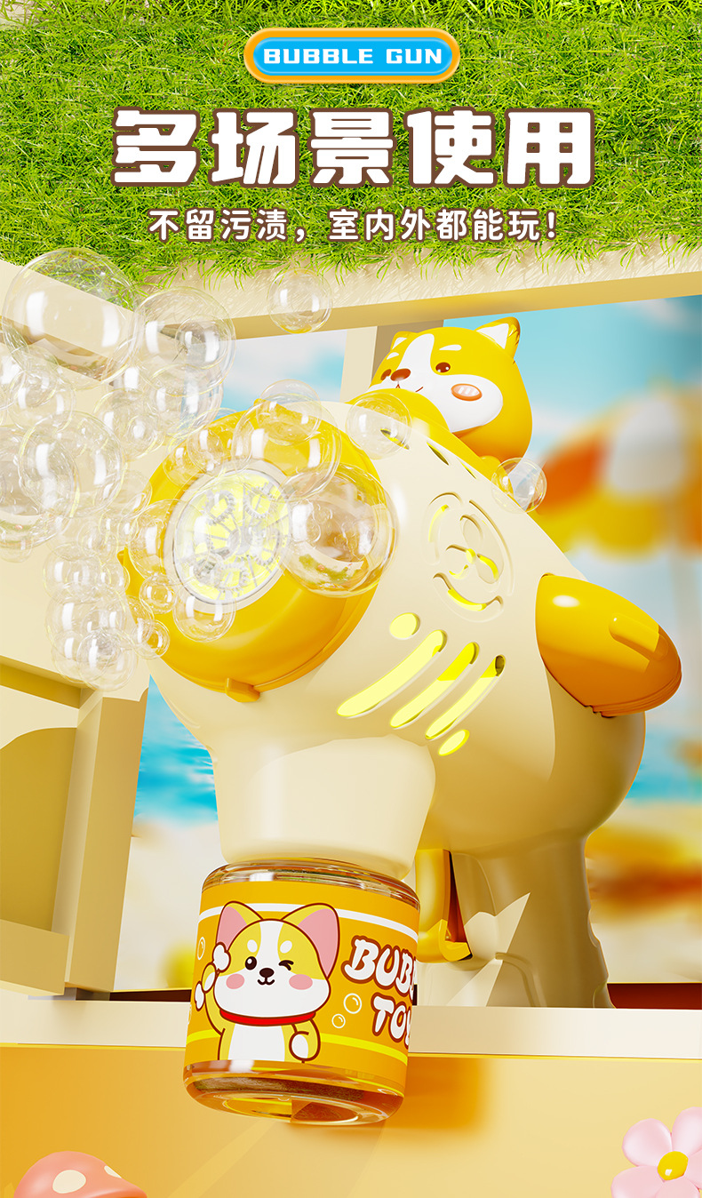 국경 간 새로운 코기 버블 머신 장난감 어린이 완전 자동 휴대용 전기 버블 건 거리 노점 도매