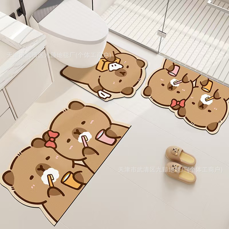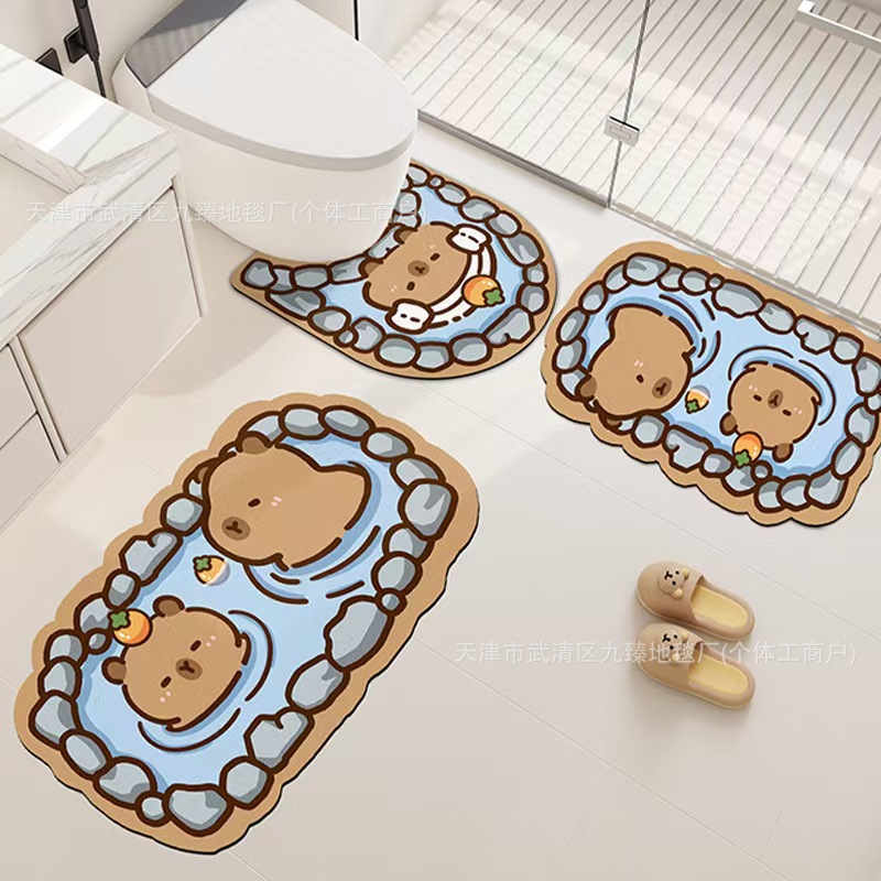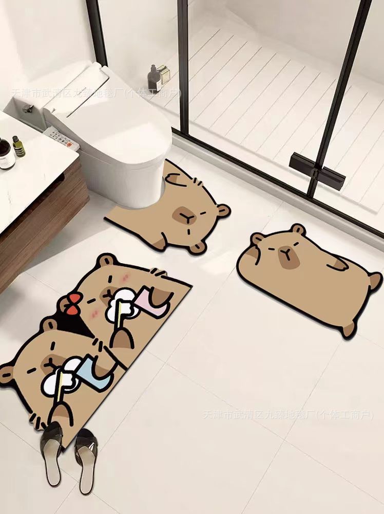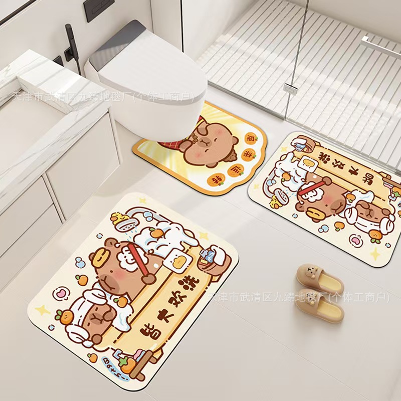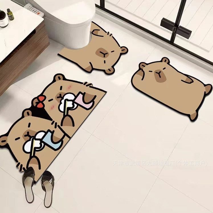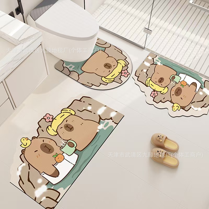 만화 Kapibara 화장실 커버 매트 욕실 화장실 문 흡수성 속건성 미끄럼 방지 발 매트 홈 입구 문 매트스토어 가기