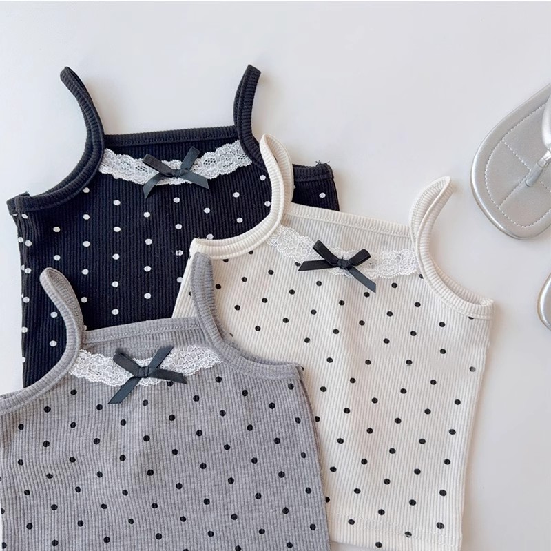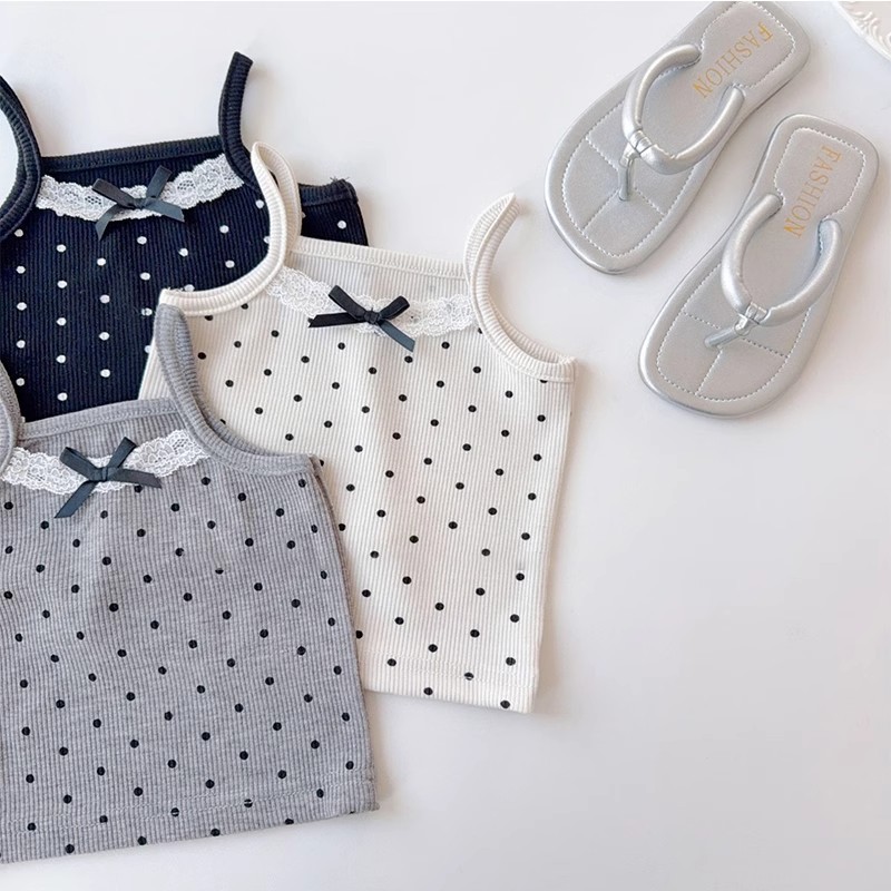 새로운 여자 레이스 보우 슬링 여성 여름 뜨거운 소녀 귀여운 폴카 도트 조끼 짧은 겉옷스토어 가기