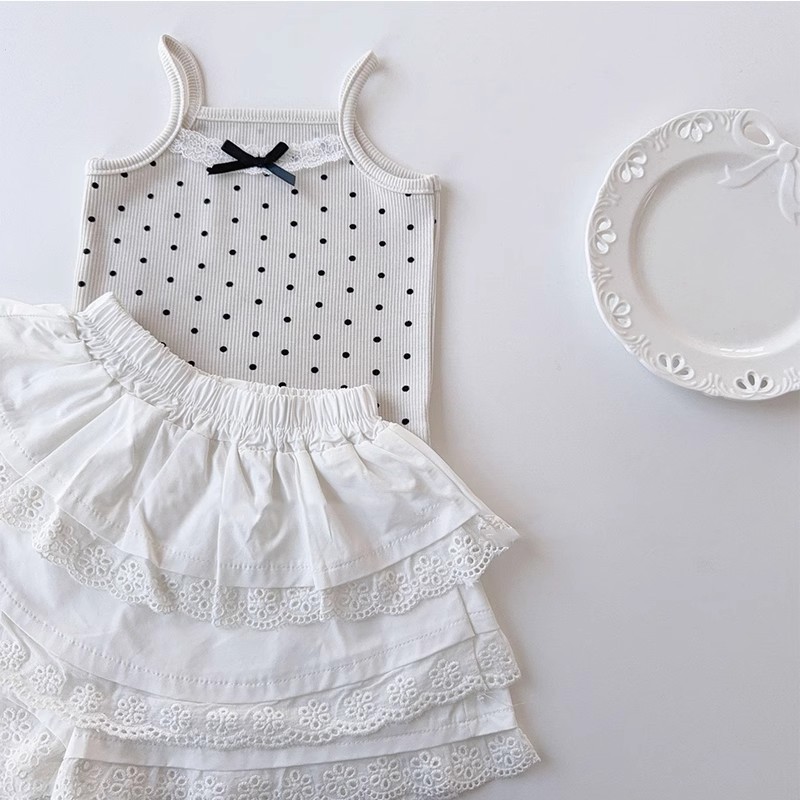 새로운 여자 레이스 보우 슬링 여성 여름 뜨거운 소녀 귀여운 폴카 도트 조끼 짧은 겉옷