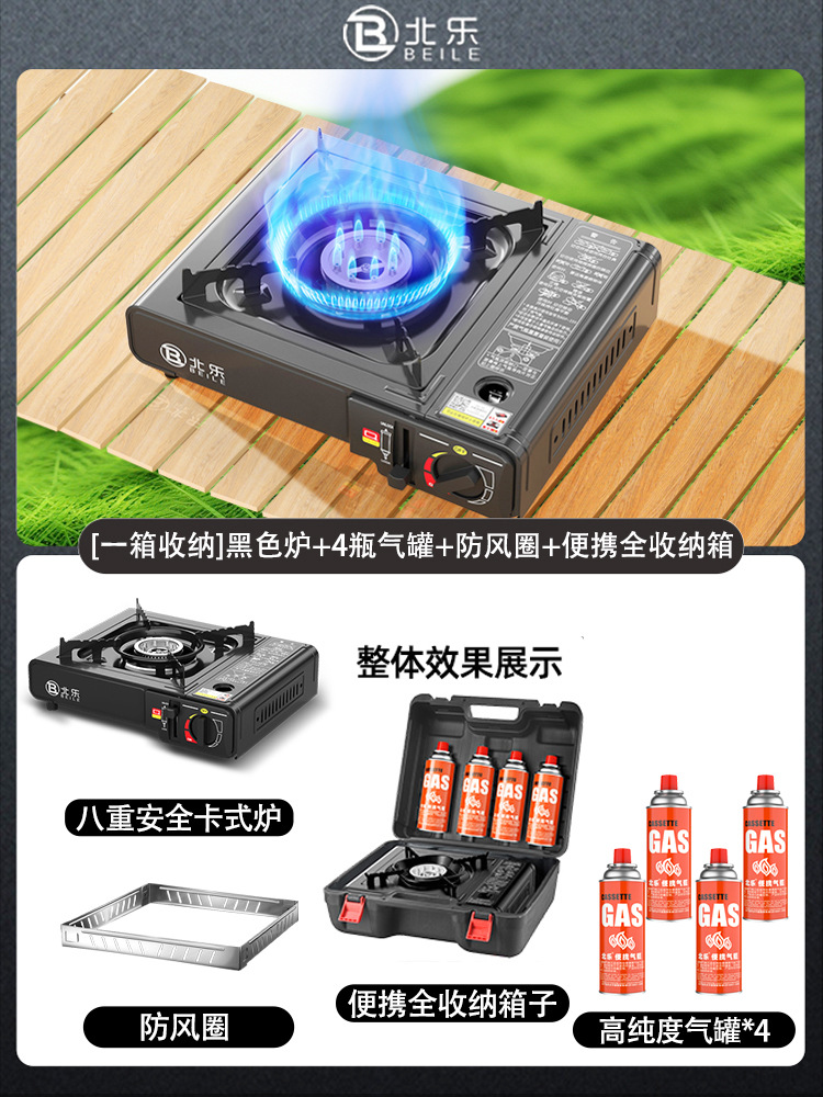 • [80%의 구매자가 하나의 보관함을 선호함] 업그레이드된 검정색 스토브 + 가스탱크 4개 + 방풍링 + 휴대용 전체 보관함