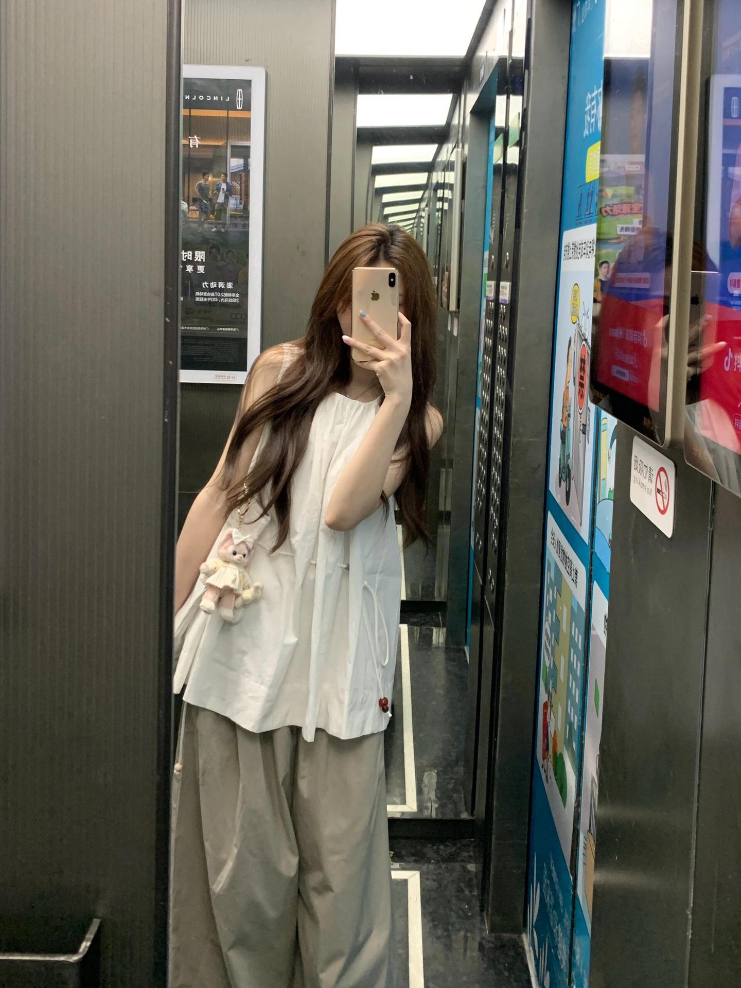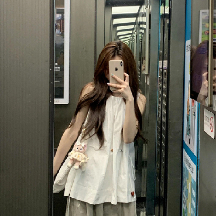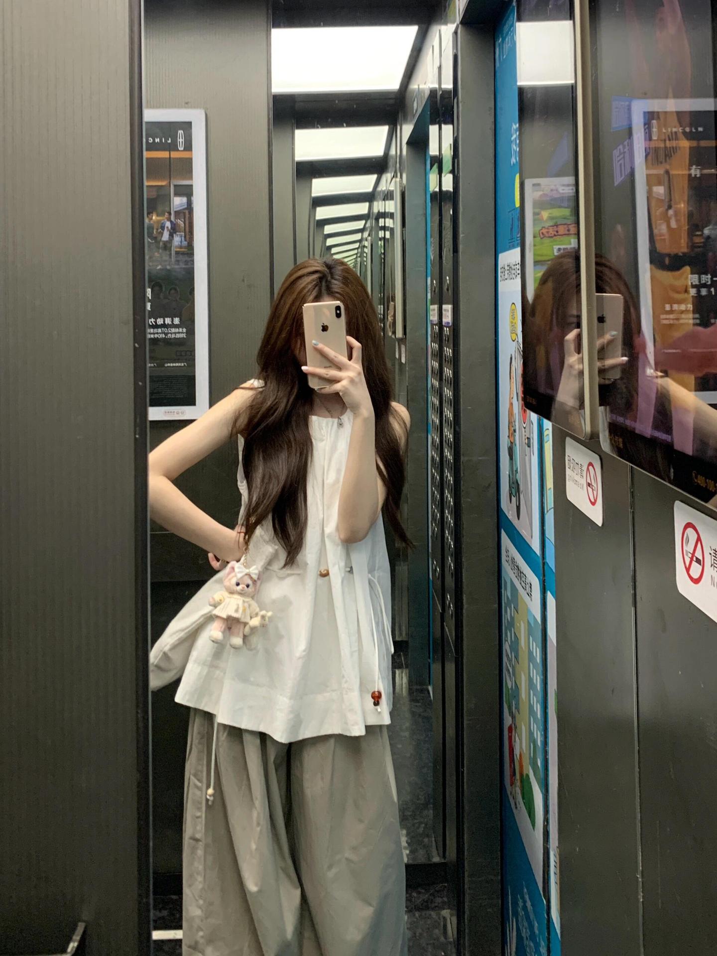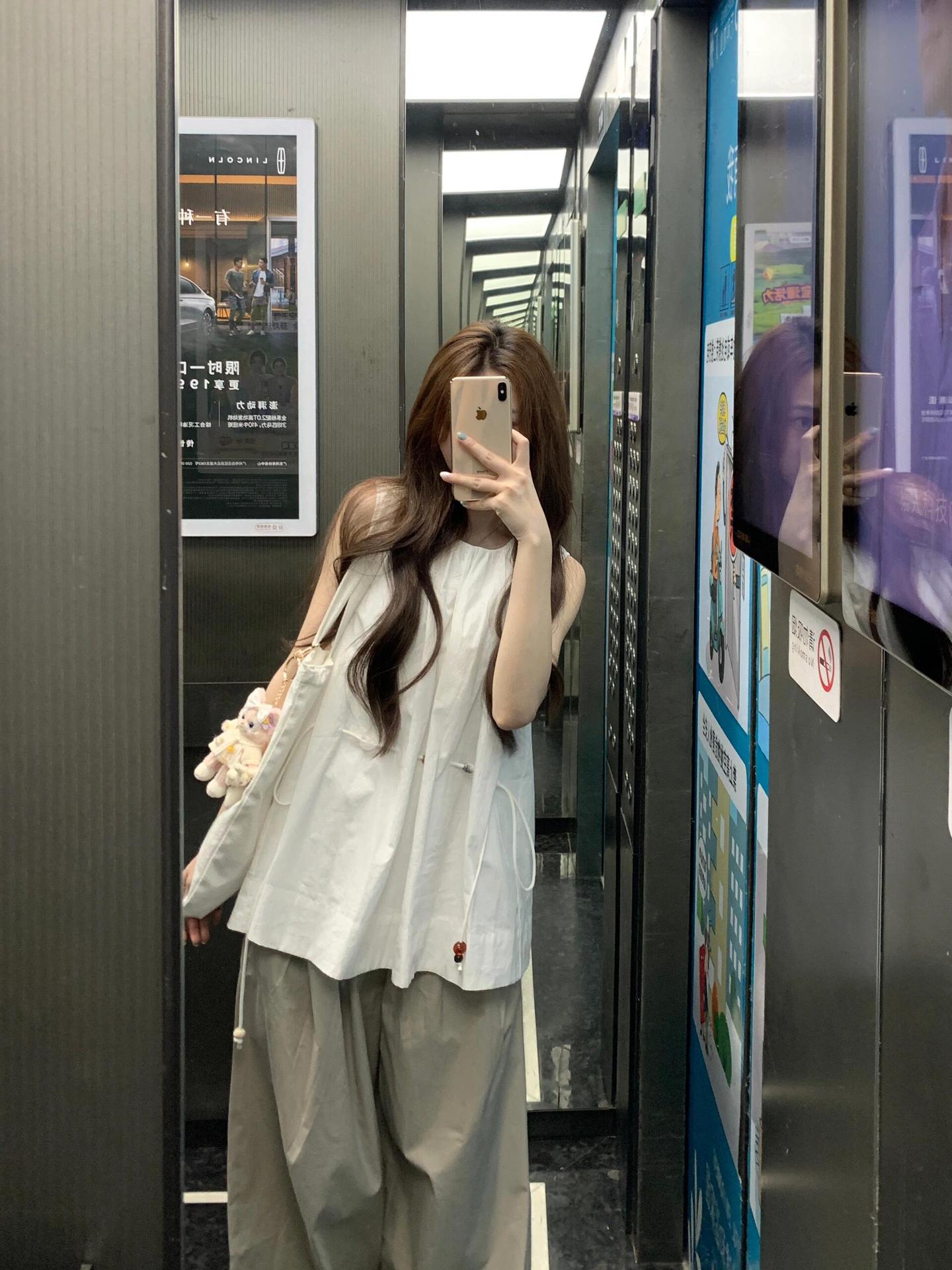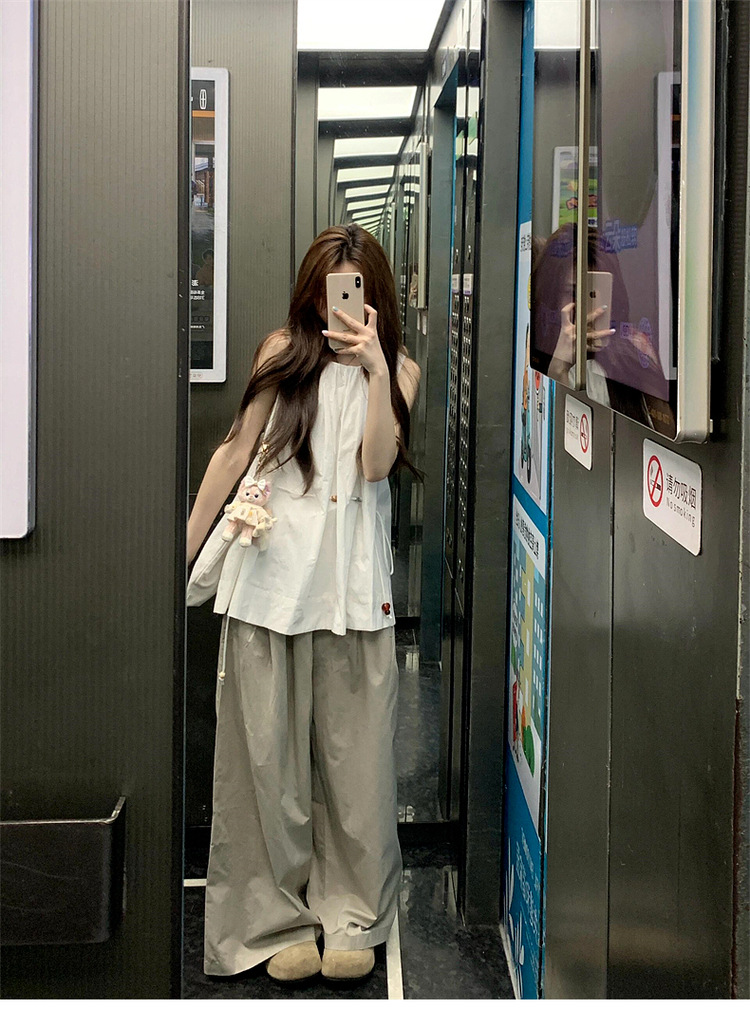 디자인 센스 니쉬 캐주얼 스포츠 세트 여성 여름 민소매 드로스트링 탑 얇은 작업복 와이드 레그 바지 투피스 세트