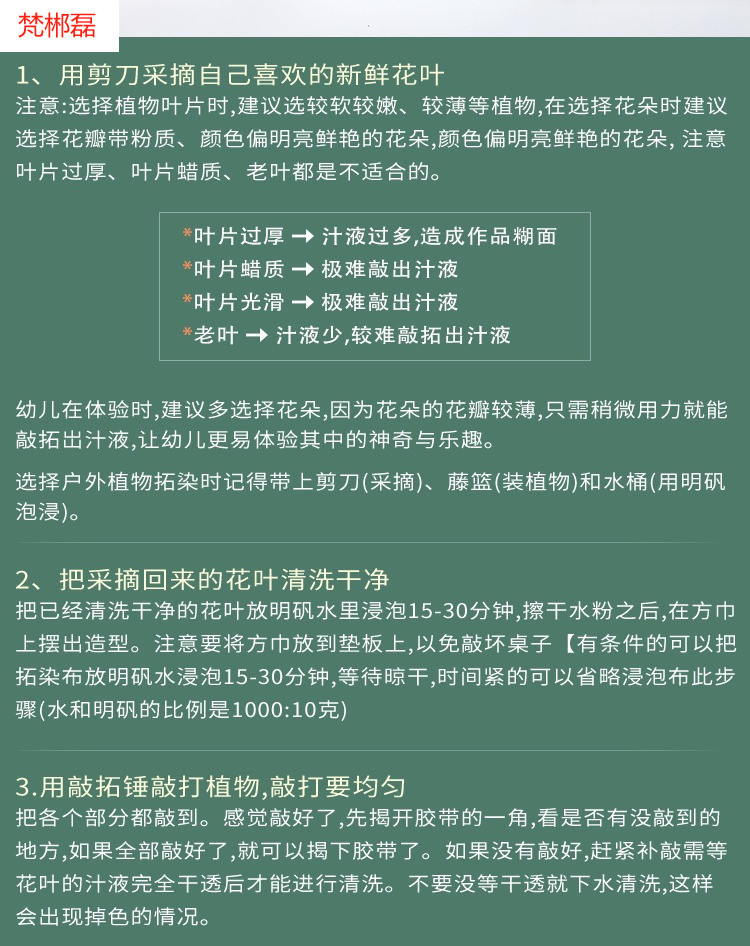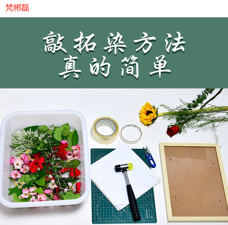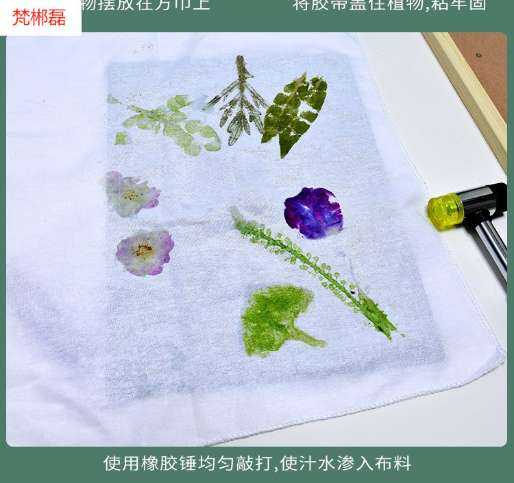 식물 인쇄 및 염료 재료 패키지 도구 세트 유치원 어린이 수제 인쇄 망치 diy 캔버스 가방 사각형 E18스토어 가기