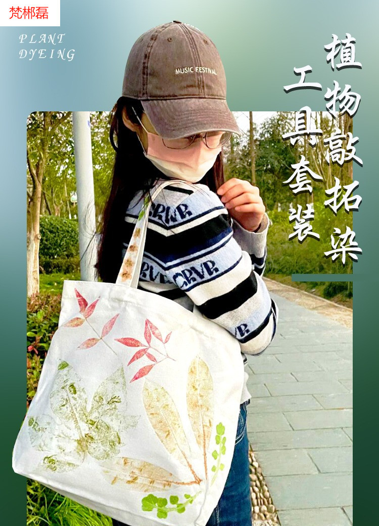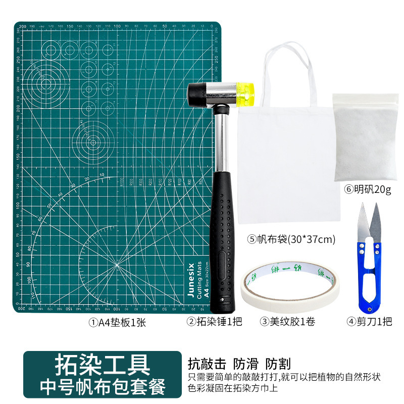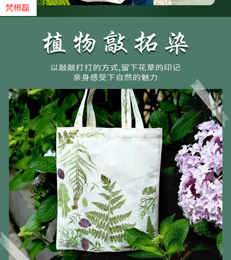 식물 인쇄 및 염료 재료 패키지 도구 세트 유치원 어린이 수제 인쇄 망치 diy 캔버스 가방 사각형 E18