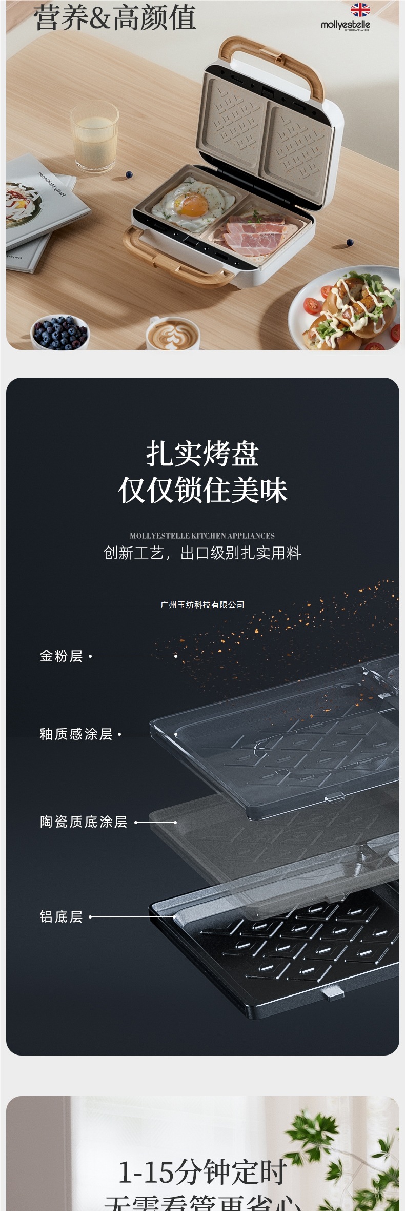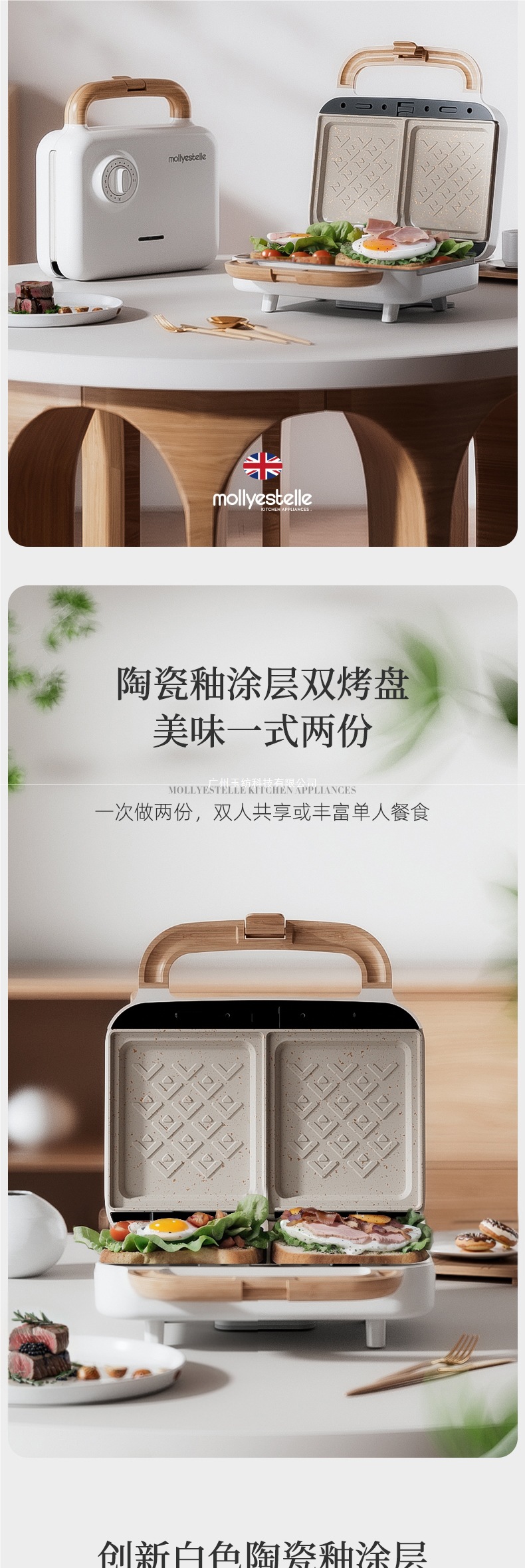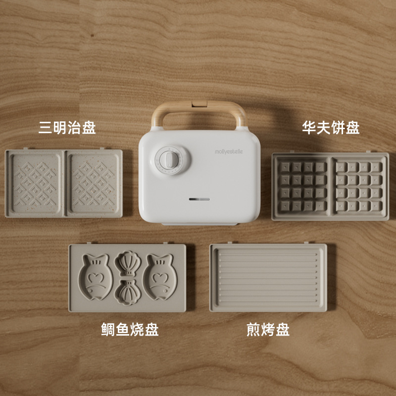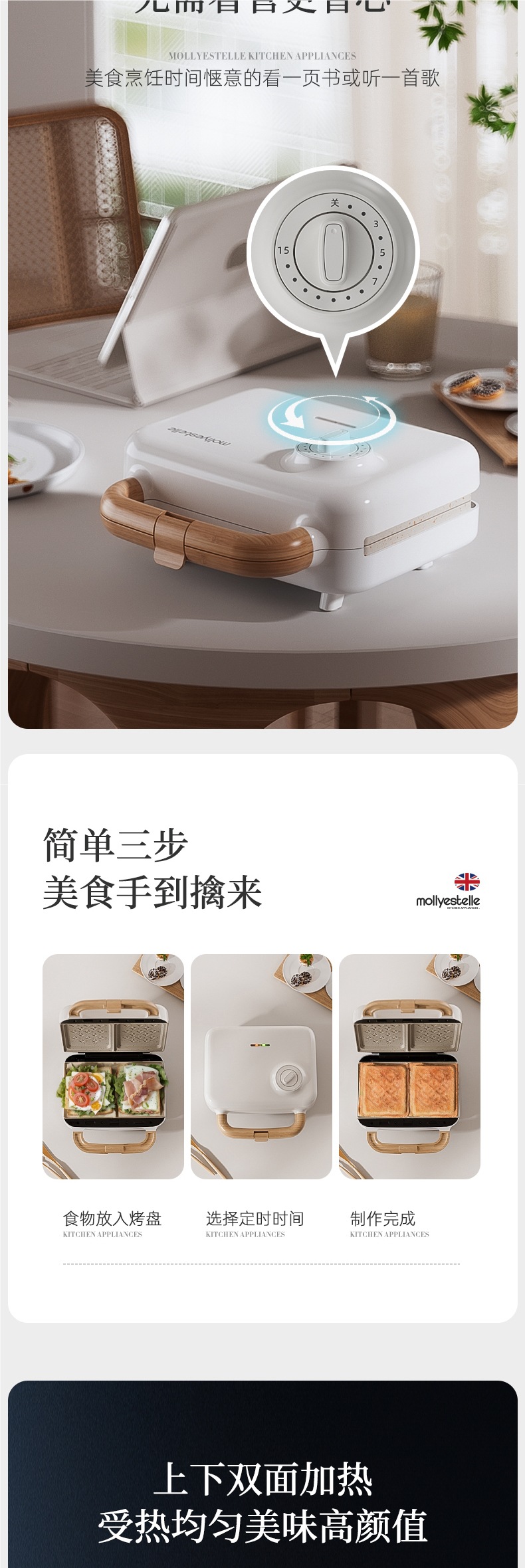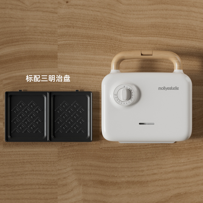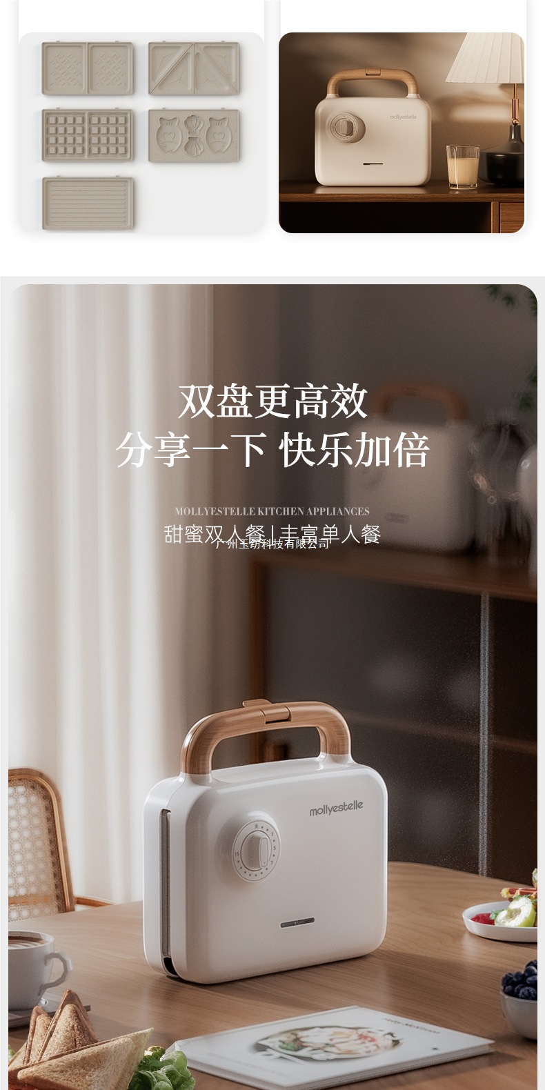 Mollyestelle 더블 플레이트 샌드위치 아침 식사 기계 가정용 타이밍 다기능 와플 가벼운 음식 기계 빵 기계스토어 가기