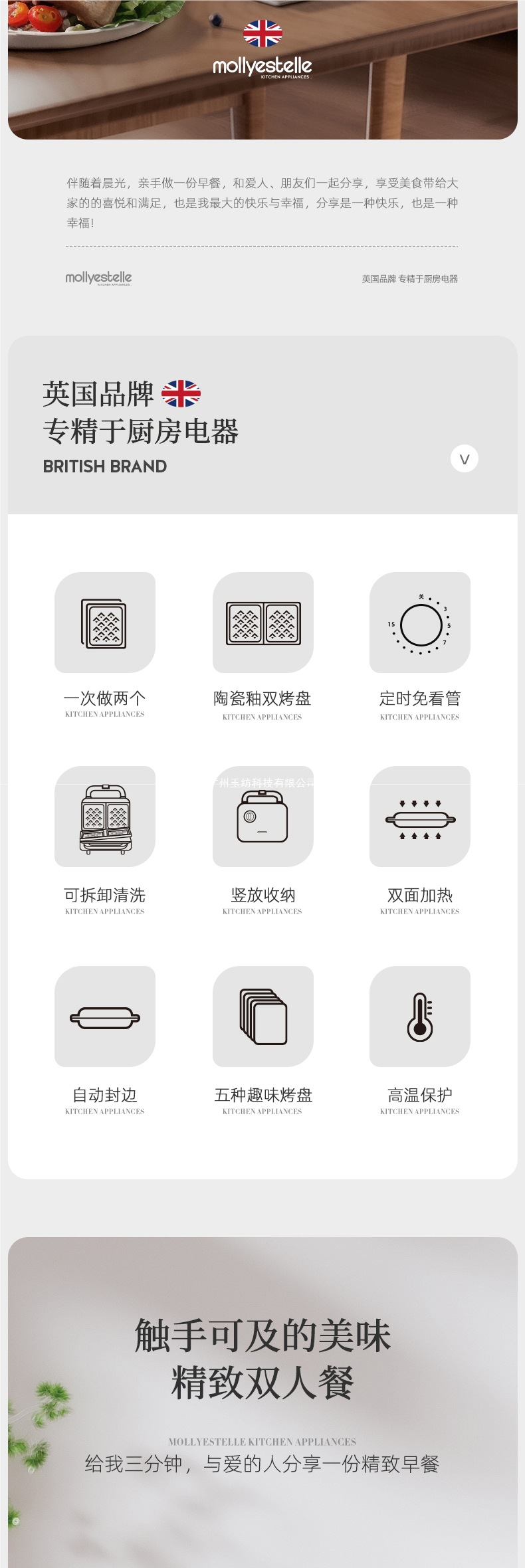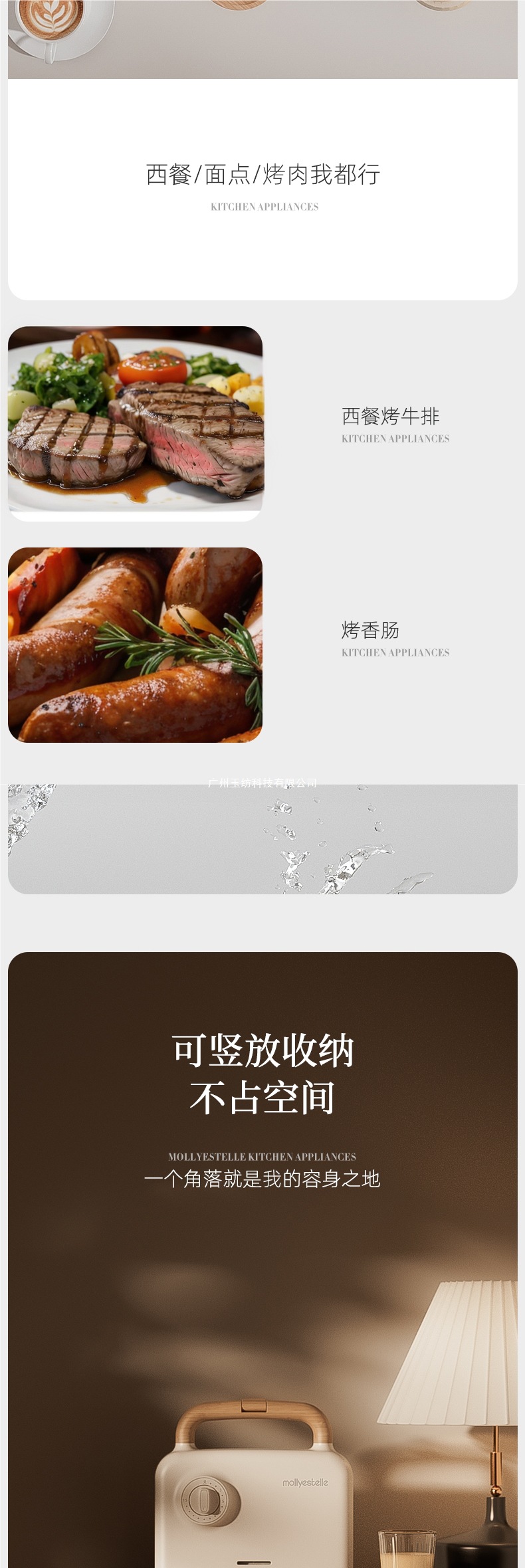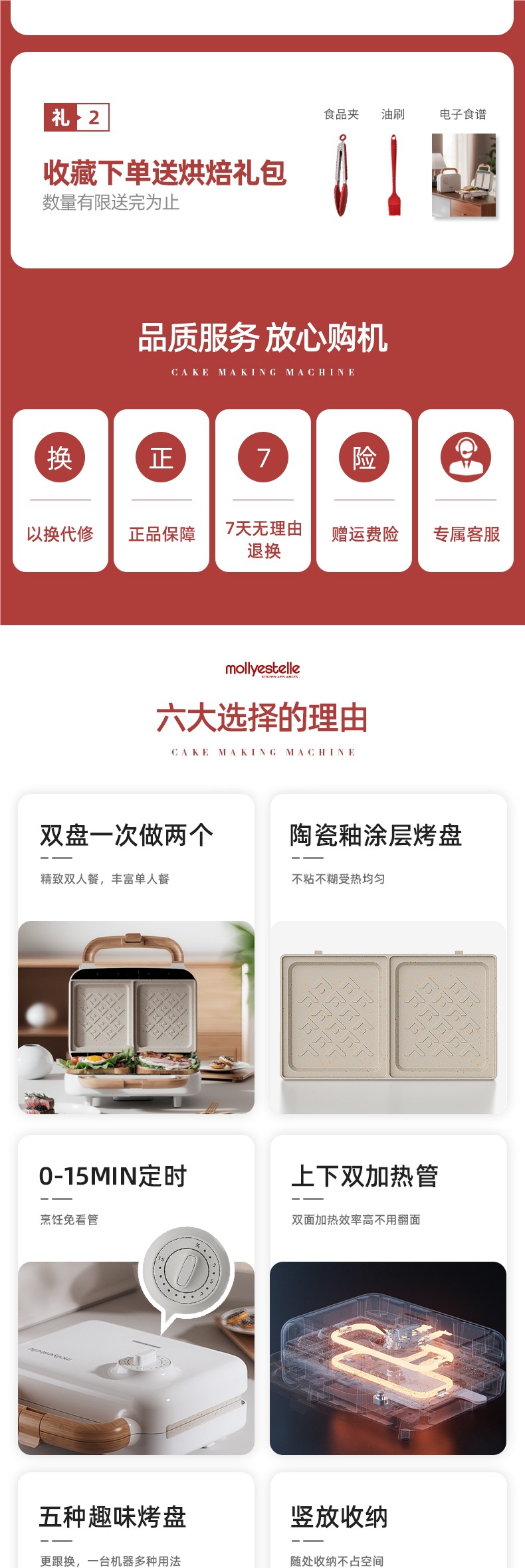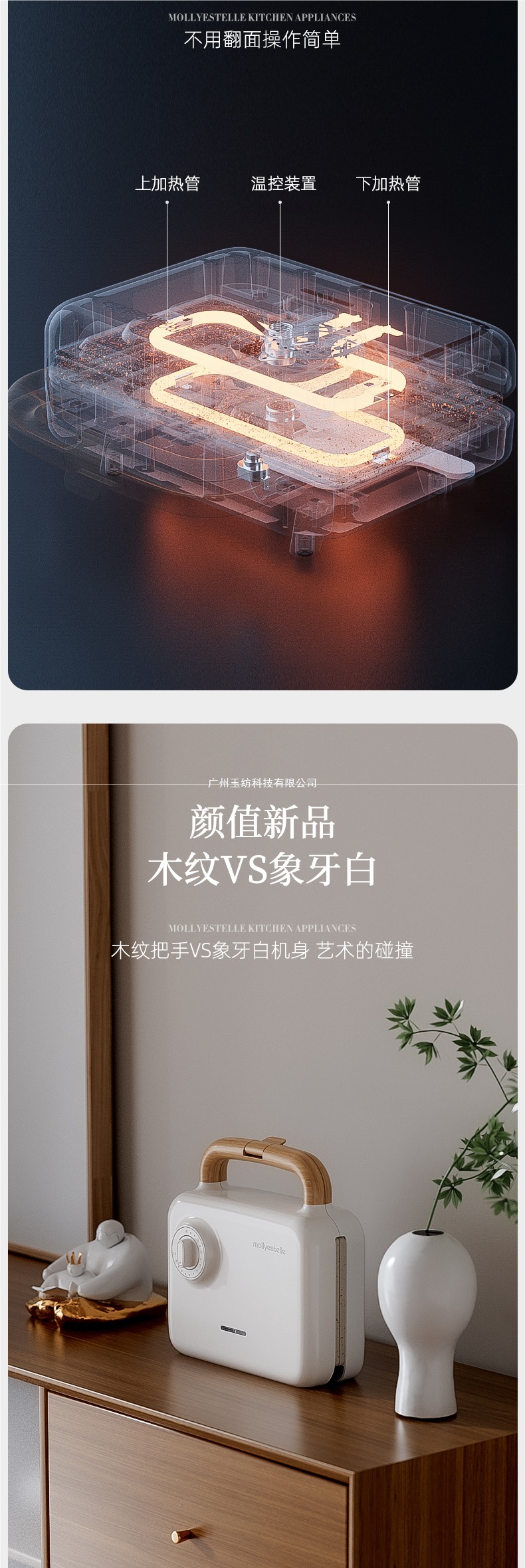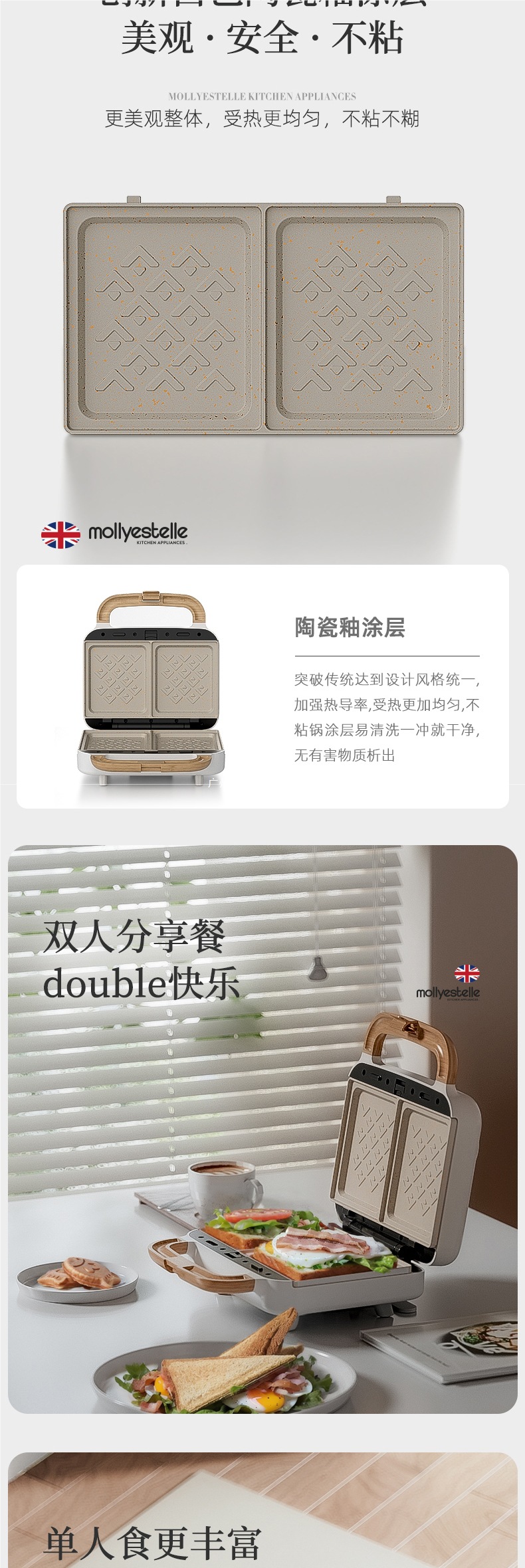 Mollyestelle 더블 플레이트 샌드위치 아침 식사 기계 가정용 타이밍 다기능 와플 가벼운 음식 기계 빵 기계스토어 가기