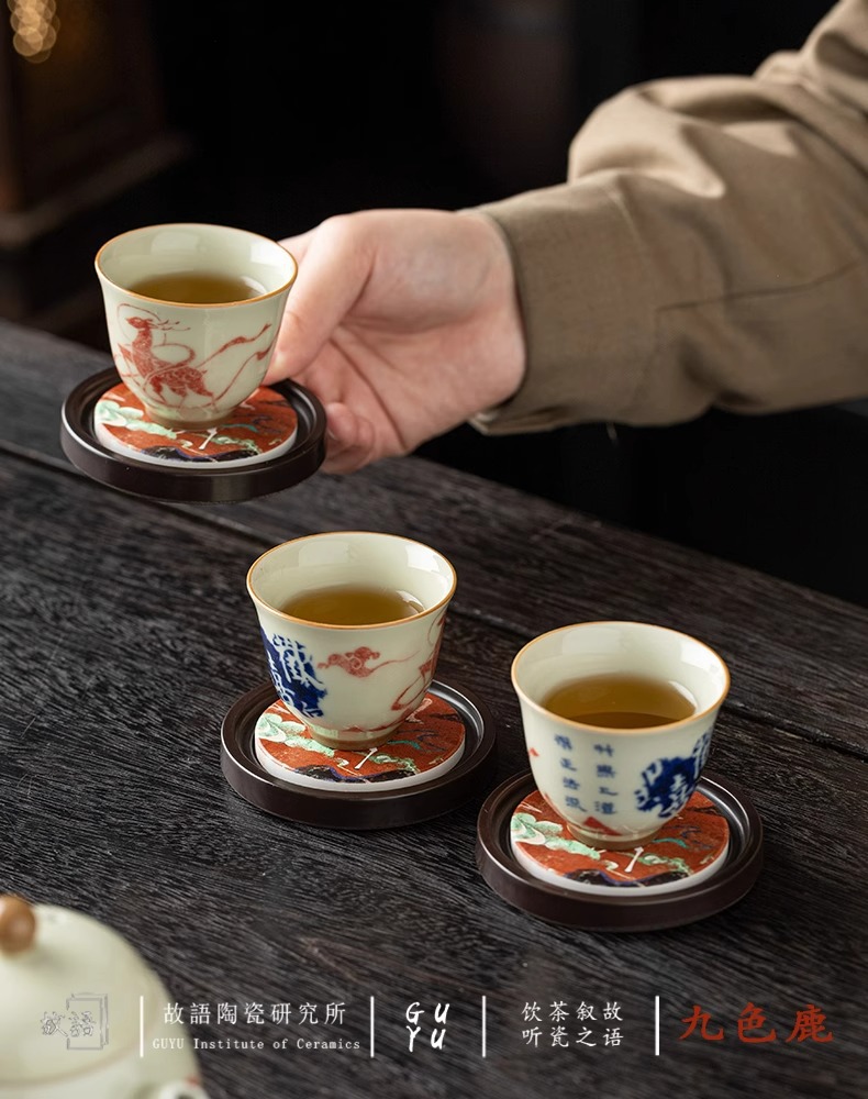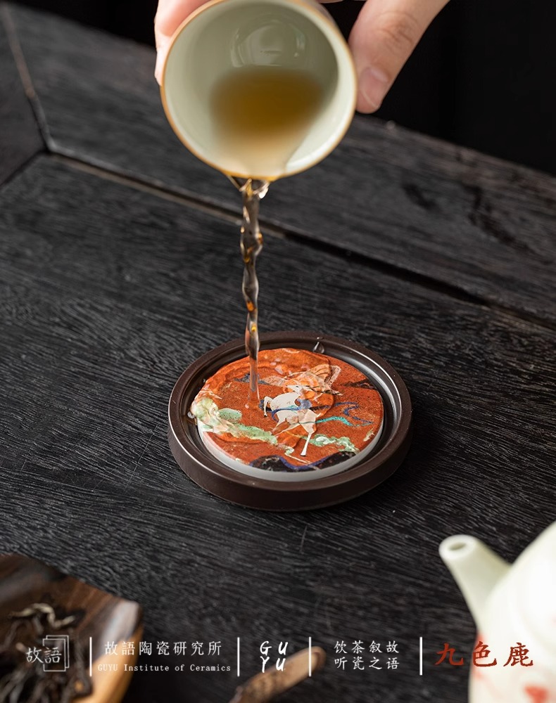 둔황 플라잉 댄스 걸 흡수성 티 매트 컵 받침 차 매트 다도 쿵푸 티 컵 홀더 Anti-scalding 크리 에이 티브 티 세트 액세서리