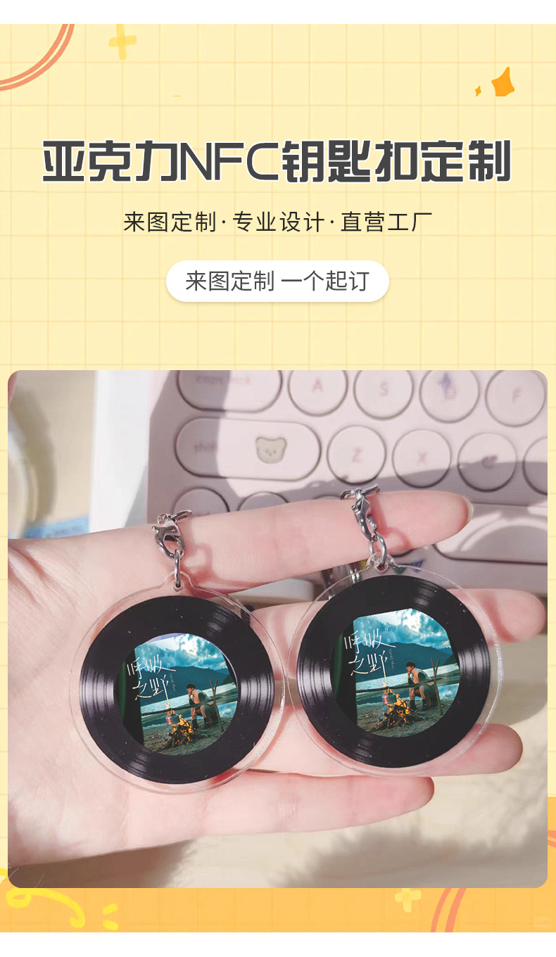 NFC 아크릴 키 체인 맞춤형 비닐 레코드 앨범 DIY 스타 콘서트 아크릴 키 체인스토어 가기