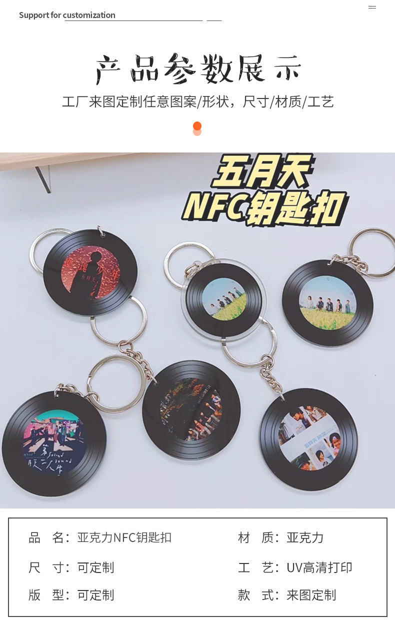 NFC 아크릴 키 체인 맞춤형 비닐 레코드 앨범 DIY 스타 콘서트 아크릴 키 체인