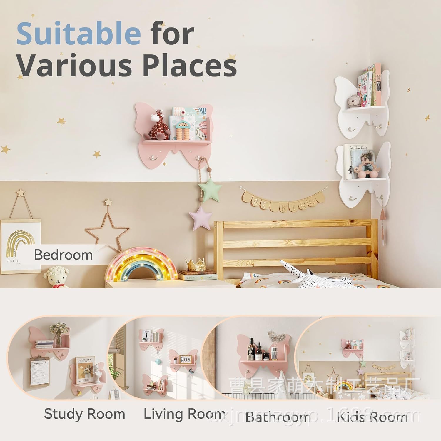 국경 간 새로운 벽 선반, 나비 벽걸이, 공주 방 장식 수납 선반, 벽걸이 장식 책장스토어 가기