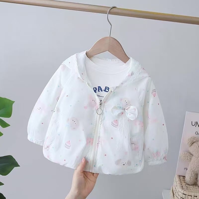 여자 여름 얇은 어린이 태양 보호 의류 2025 새로운 도파민 스타일 여자 유행 카디건 후드 자켓스토어 가기