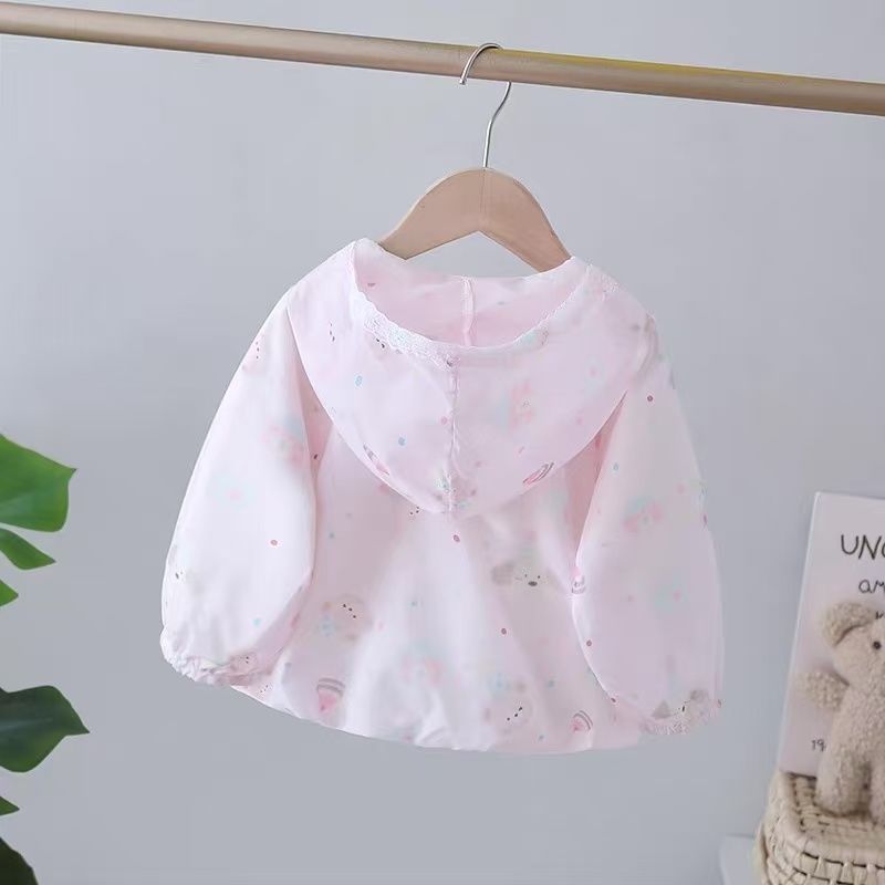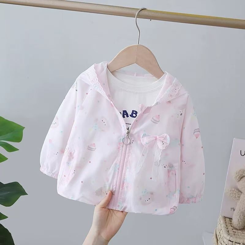여자 여름 얇은 어린이 태양 보호 의류 2025 새로운 도파민 스타일 여자 유행 카디건 후드 자켓