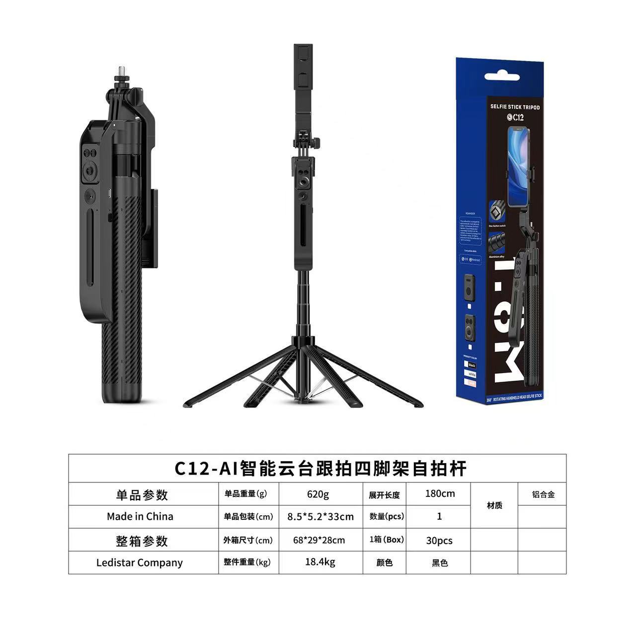 C12ai 스마트 페이스 트레킹 짐벌 손떨림 방지 셀카봉 2.16m 자동 회전 일체형 4피트 스탠드