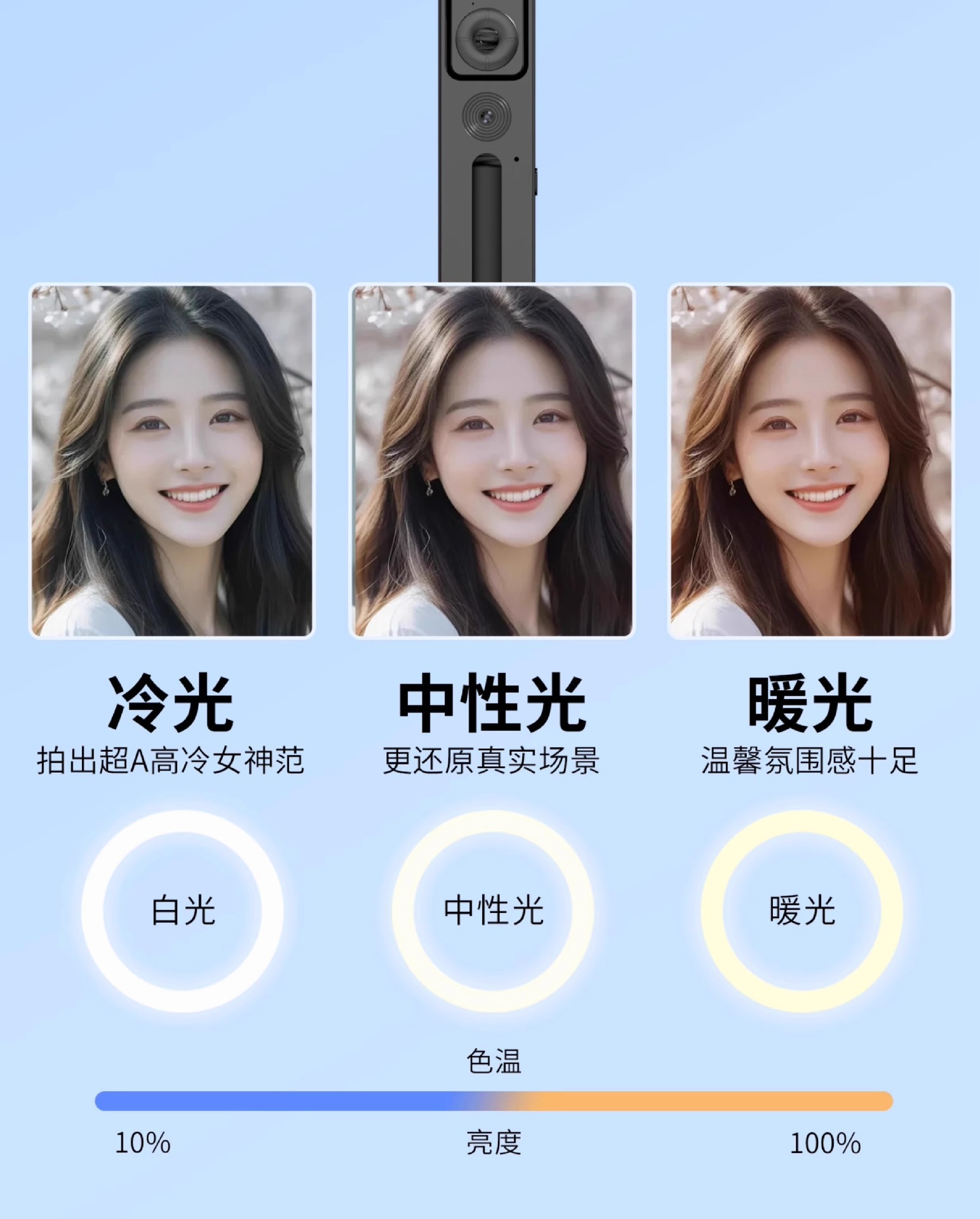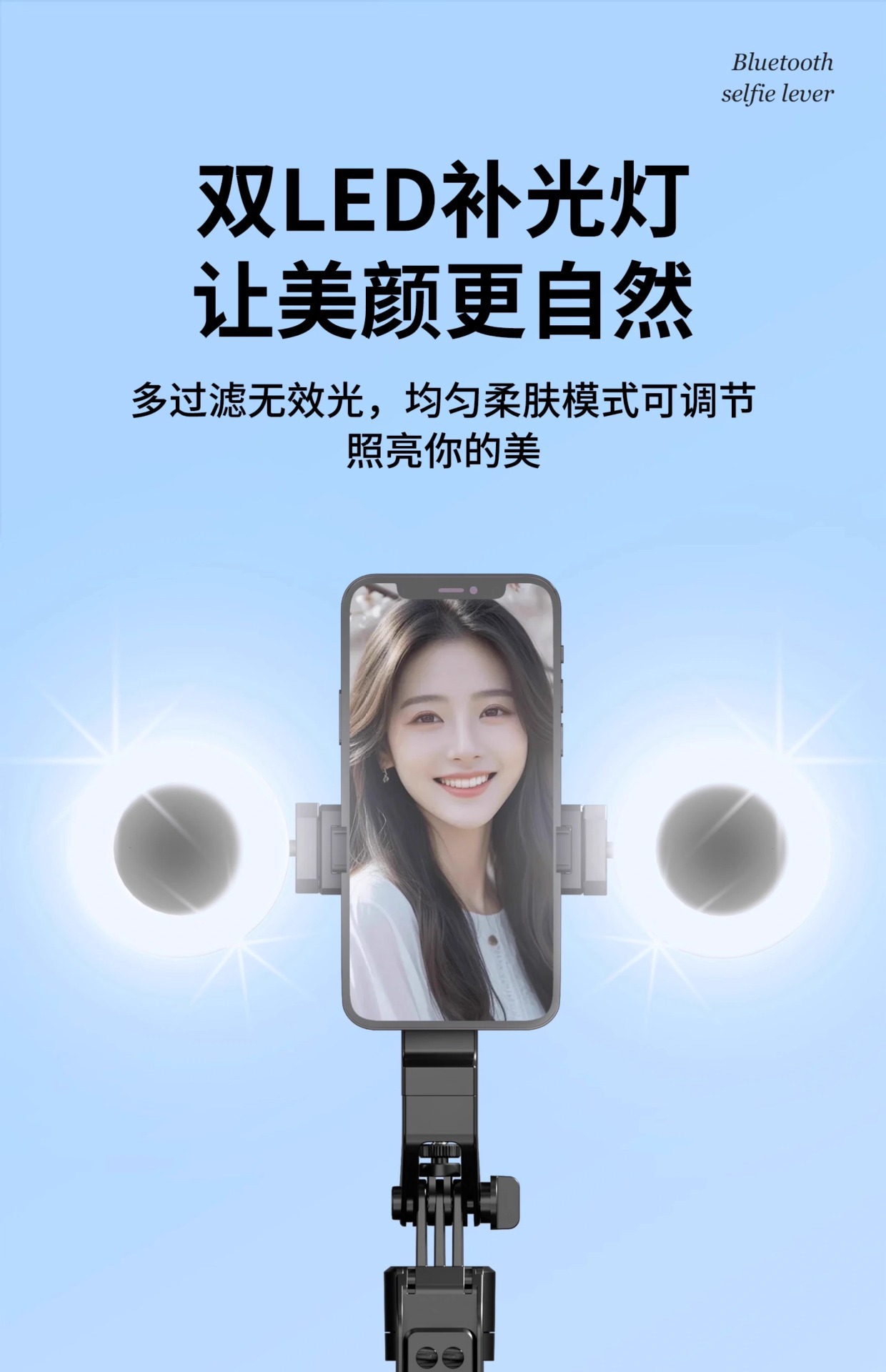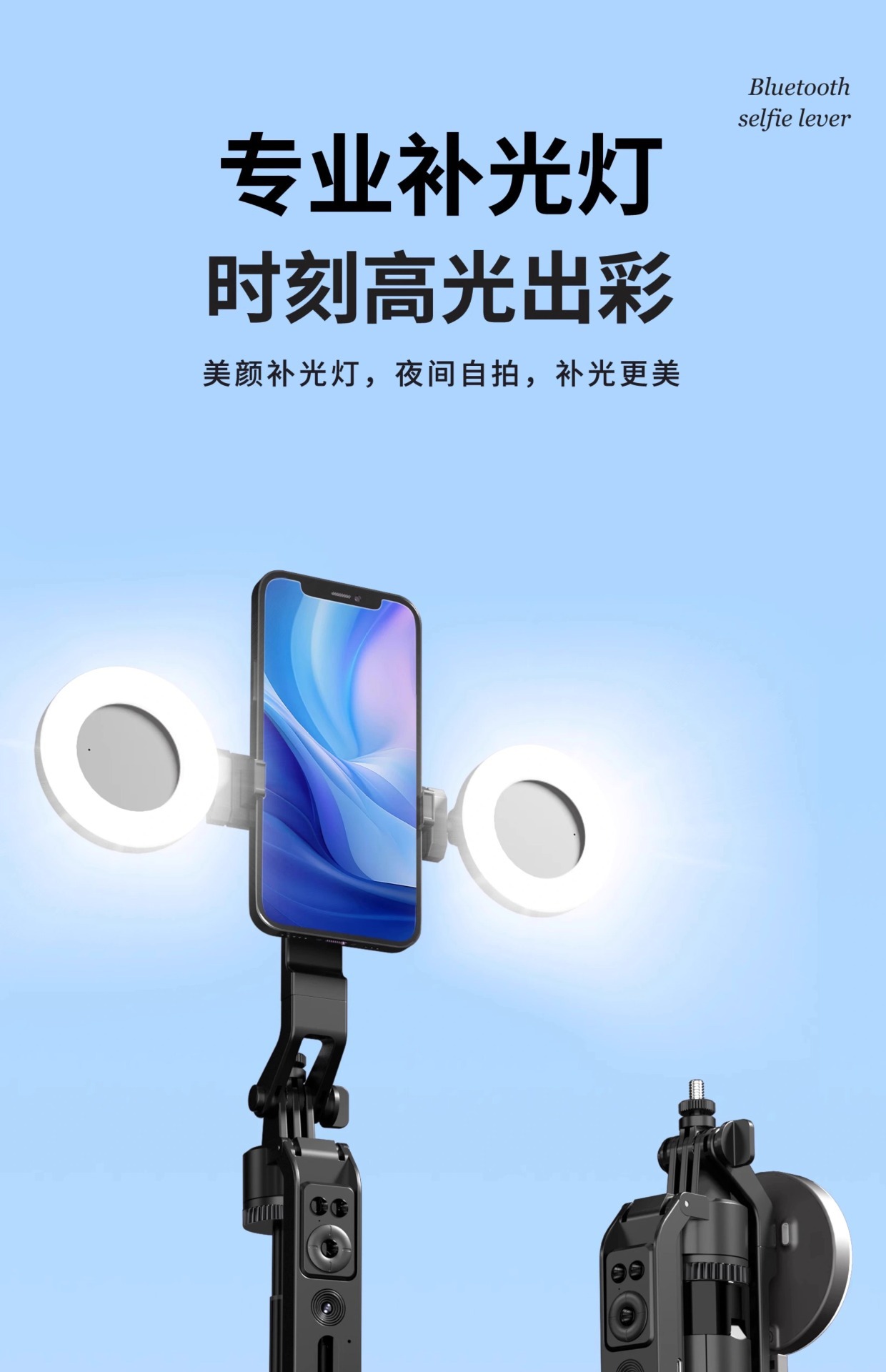 • C12 지능형 얼굴 추적 이중 조명 소형 램프 모델 [1.9m 자세 셀카봉 + 충전 Douyin 리모컨 + 2개의 작은 원형 조명]