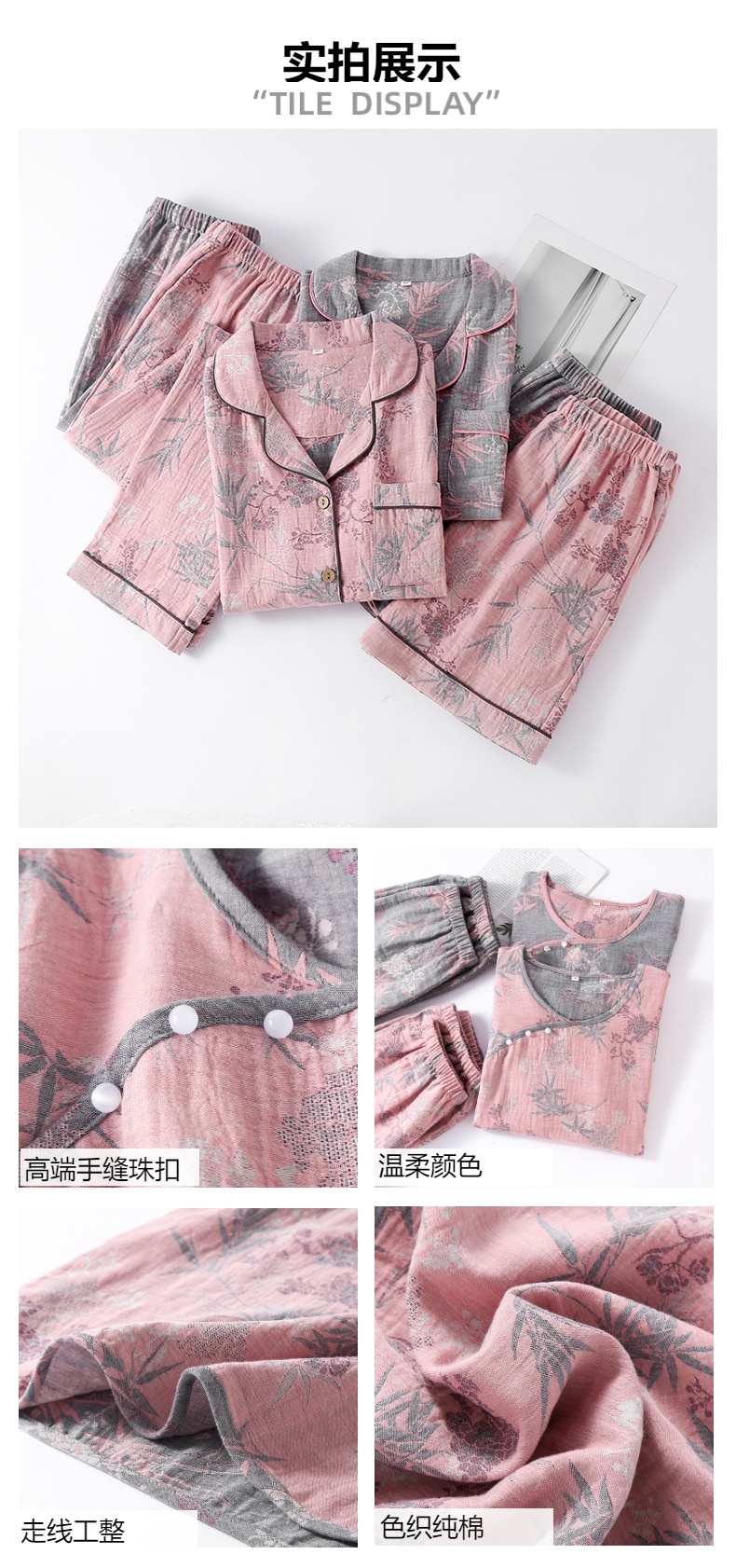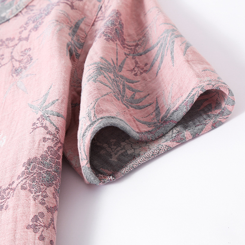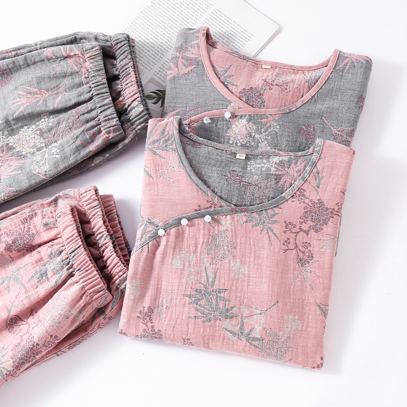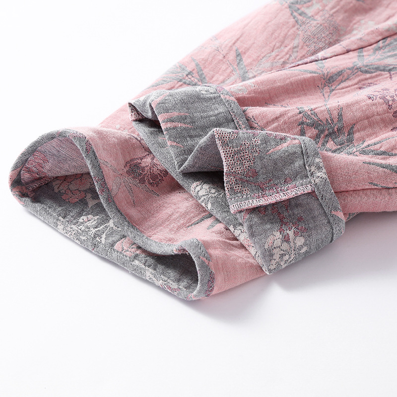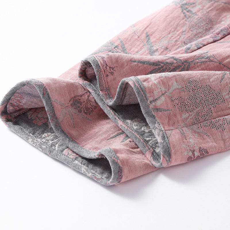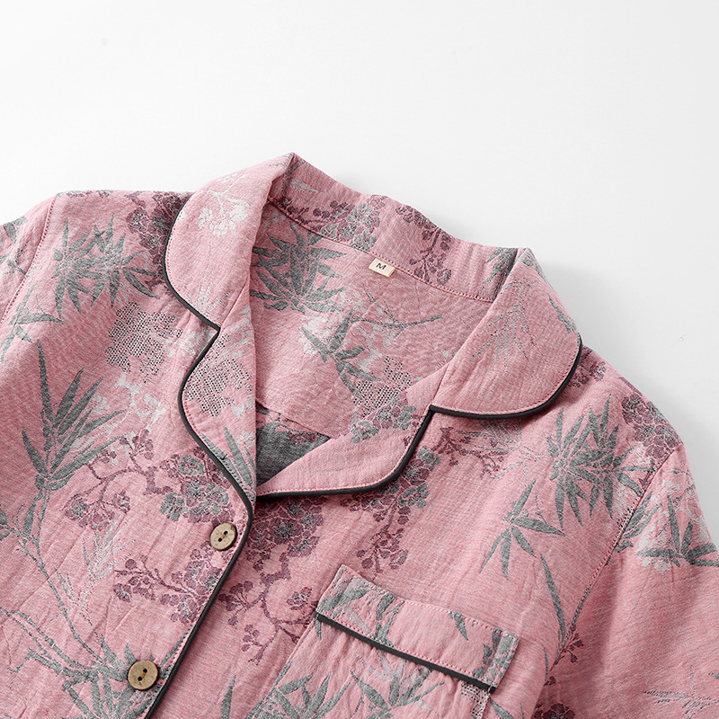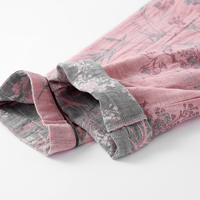 2025 새로운 스타일 Guofeng Jacquard Cotton 더블 레이어 원사 파자마 여성 여름 반팔 바지 세트 3 피스 세트스토어 가기