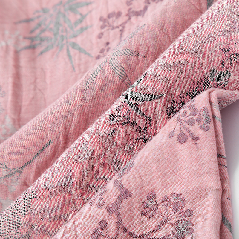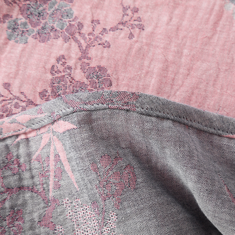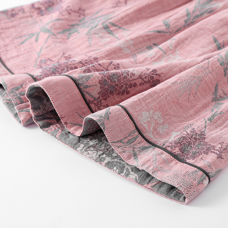 2025 새로운 스타일 Guofeng Jacquard Cotton 더블 레이어 원사 파자마 여성 여름 반팔 바지 세트 3 피스 세트