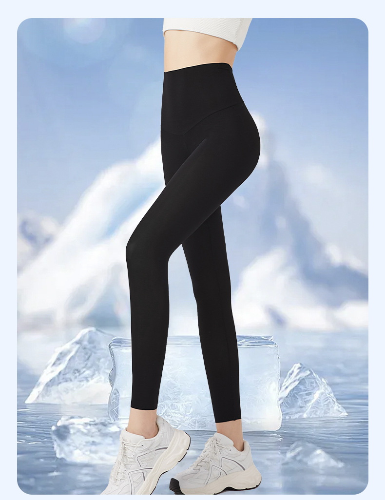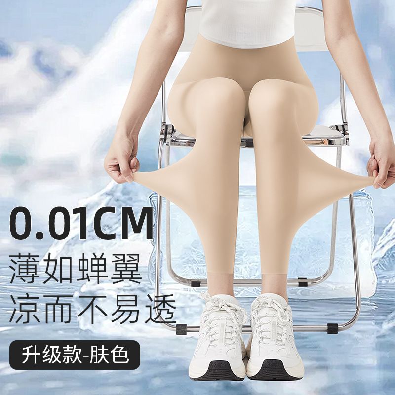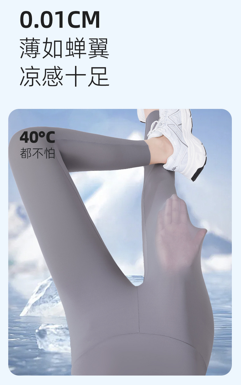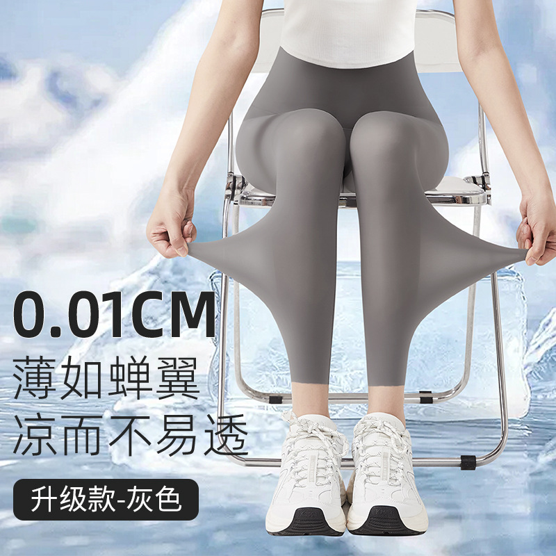 여름 초박형 상어 바지 여성용 아이스 실크 선 스크린 요가 스포츠 바비 바지 외부 착용 높은 탄성 알몸 느낌 원활한 레깅스