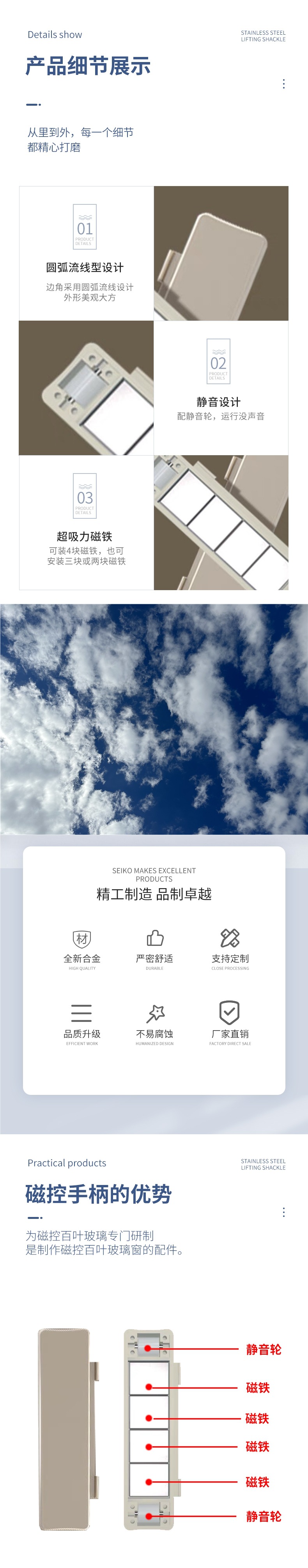 자기 제어 루버 핸들 리프트 스위치 알루미늄 합금 내장 단일 유리 중공 루버 제어 자기 제어 핸들스토어 가기