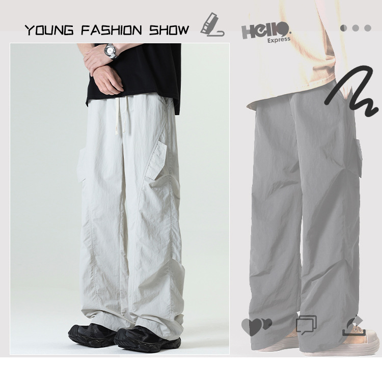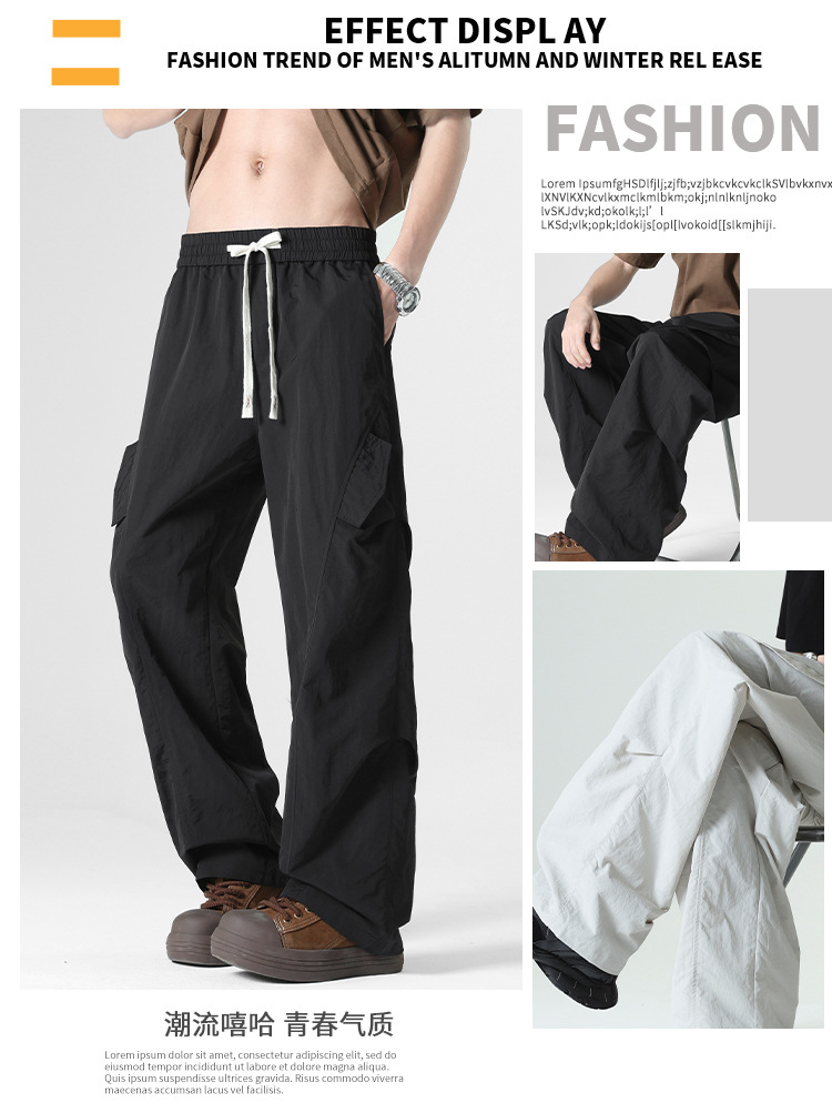 여름 얇은 빠른 건조 오버올 남자와 여자의 편안한 통기성 스포츠 캐주얼 바지 스트레이트-레그 루즈 올 매치 바지