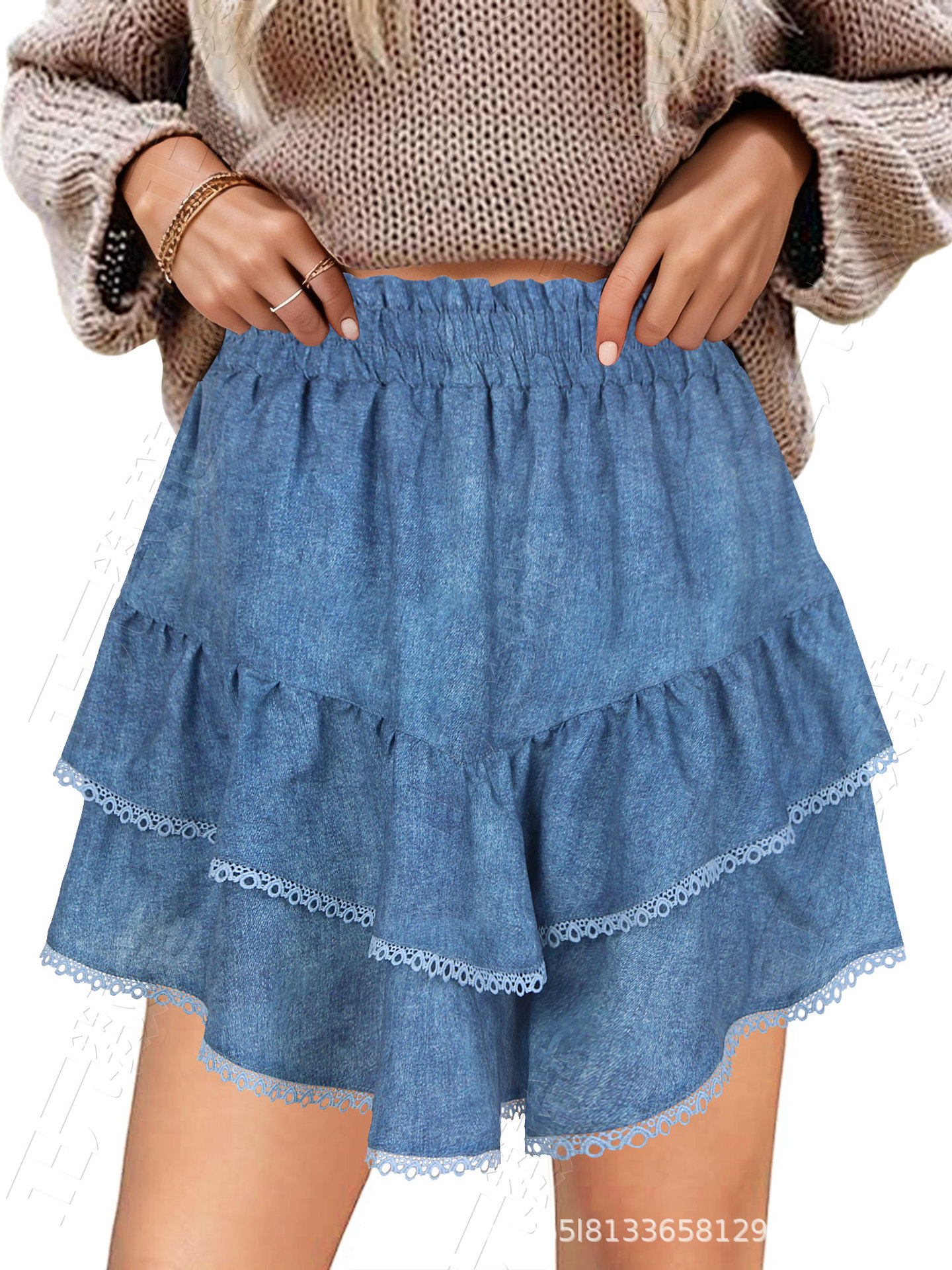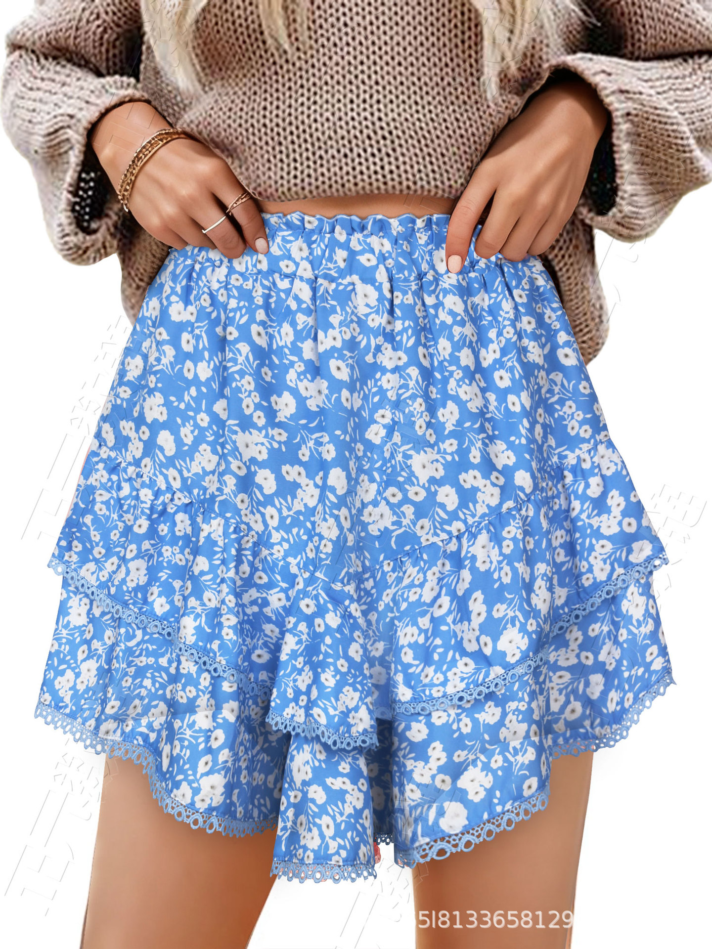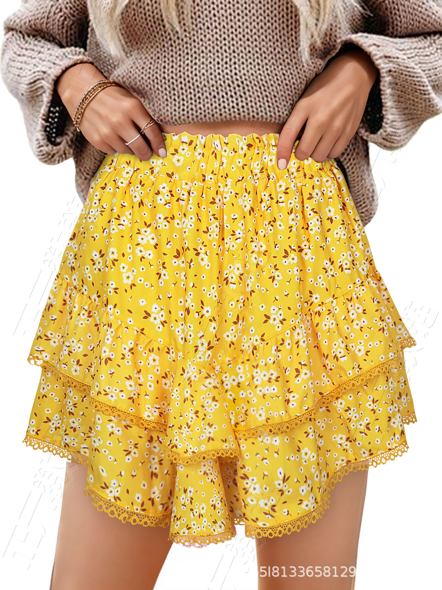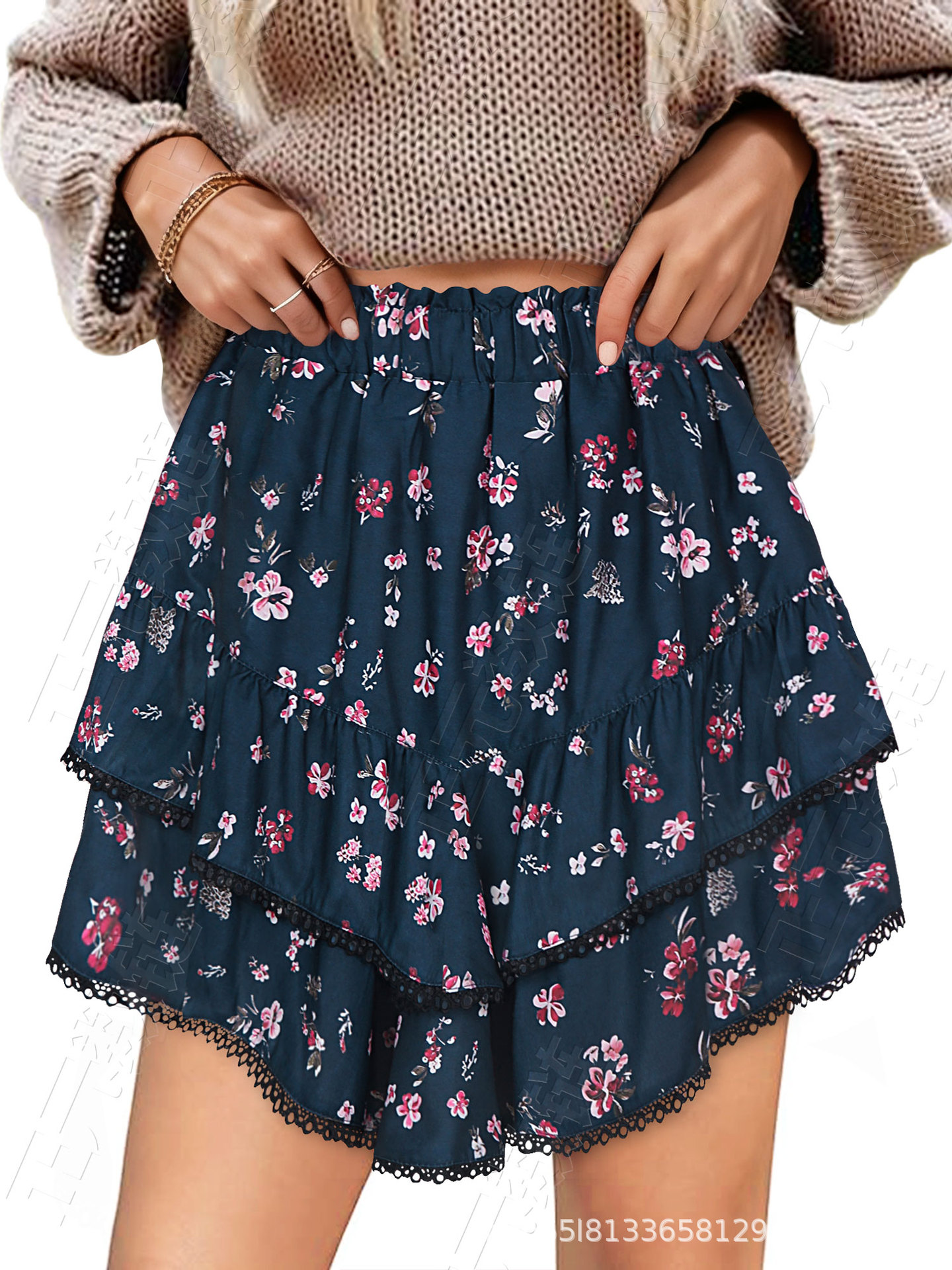 아마존 유럽과 미국의 국경 간 여성 캐주얼 보헤미안 주름 레이어드 스커트 하이 웨이스트 케이크 스커트