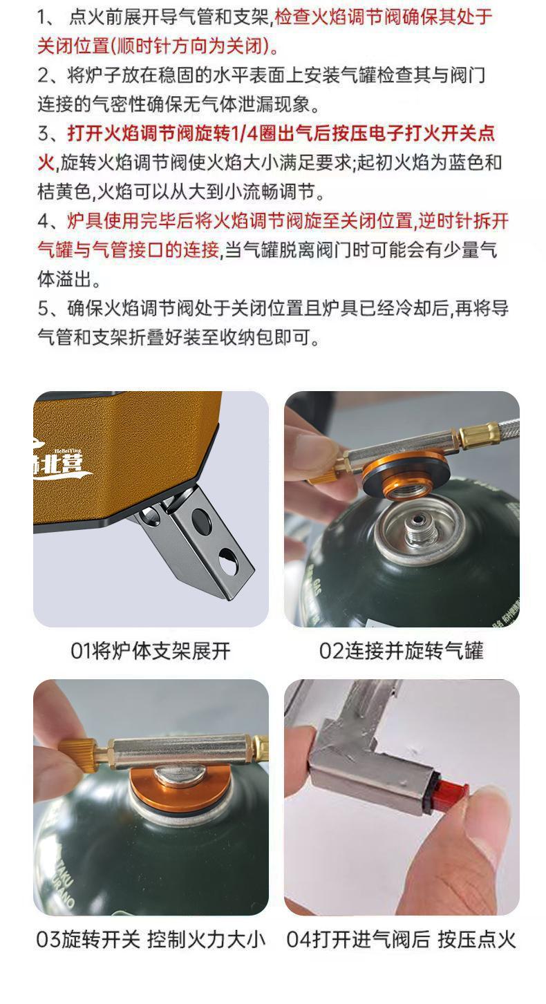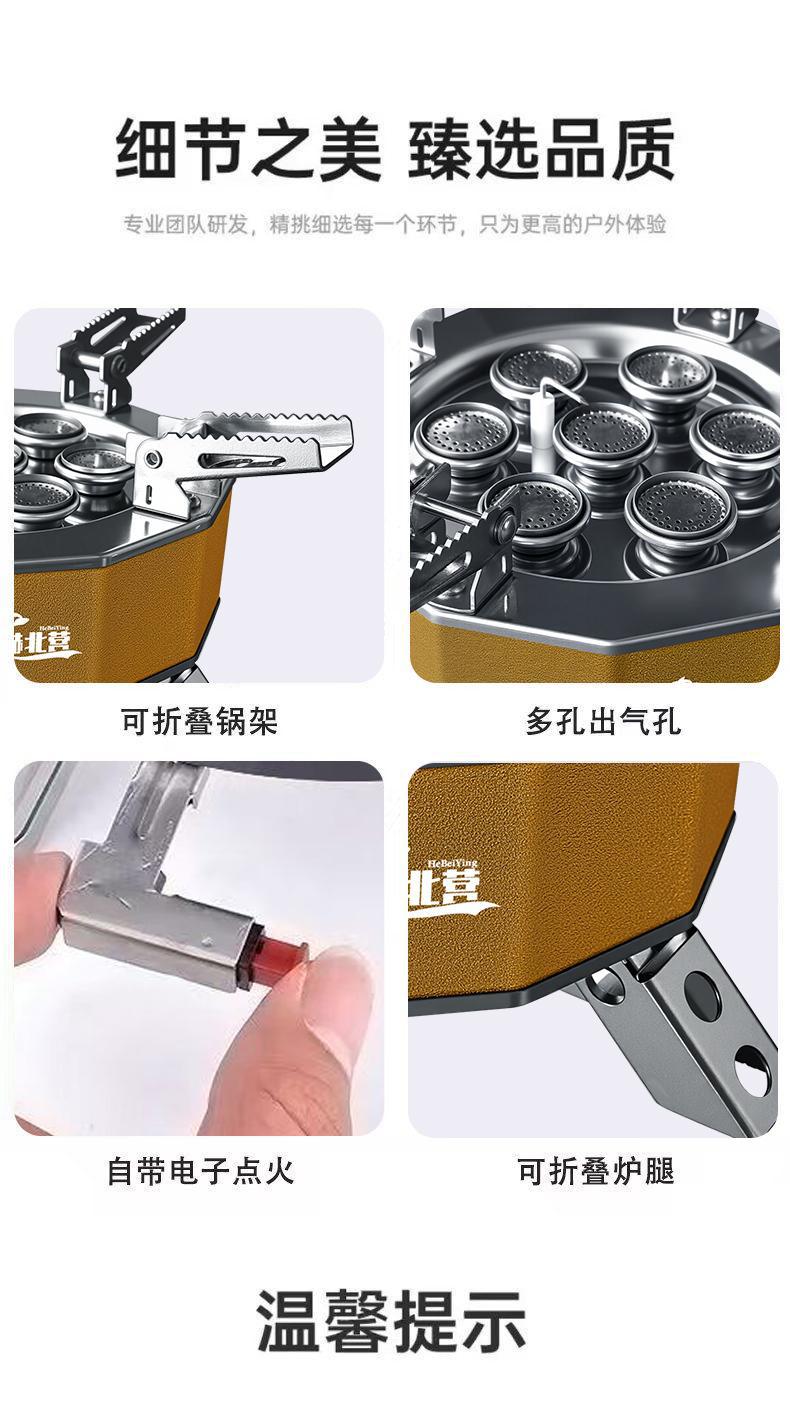 Hebeiying Seven Star 강력한 스토브 야외 휴대용 분할 카세트 스토브 방풍 고출력 가스 캠핑 조리기구